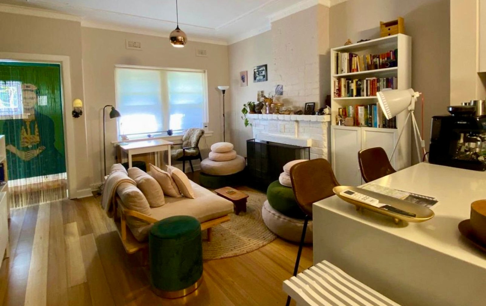 Offering approximately 65sqm of living space, the apartment has been thoughtfully renovated to blend modern comfort with classic heritage detail. A private entry porch welcomes you into a generous living area adorned with ornate ceiling cornices, polished hardwood floors, a stunning original fireplace and split-system heating and cooling.