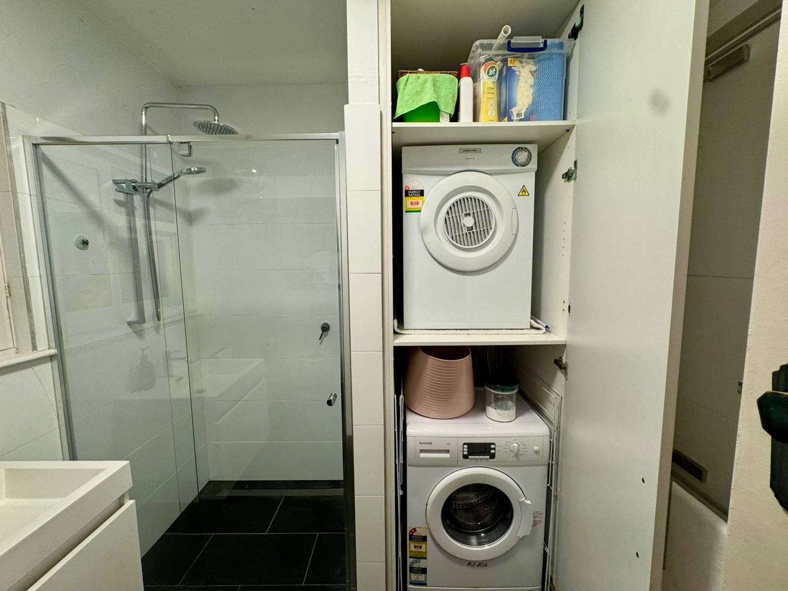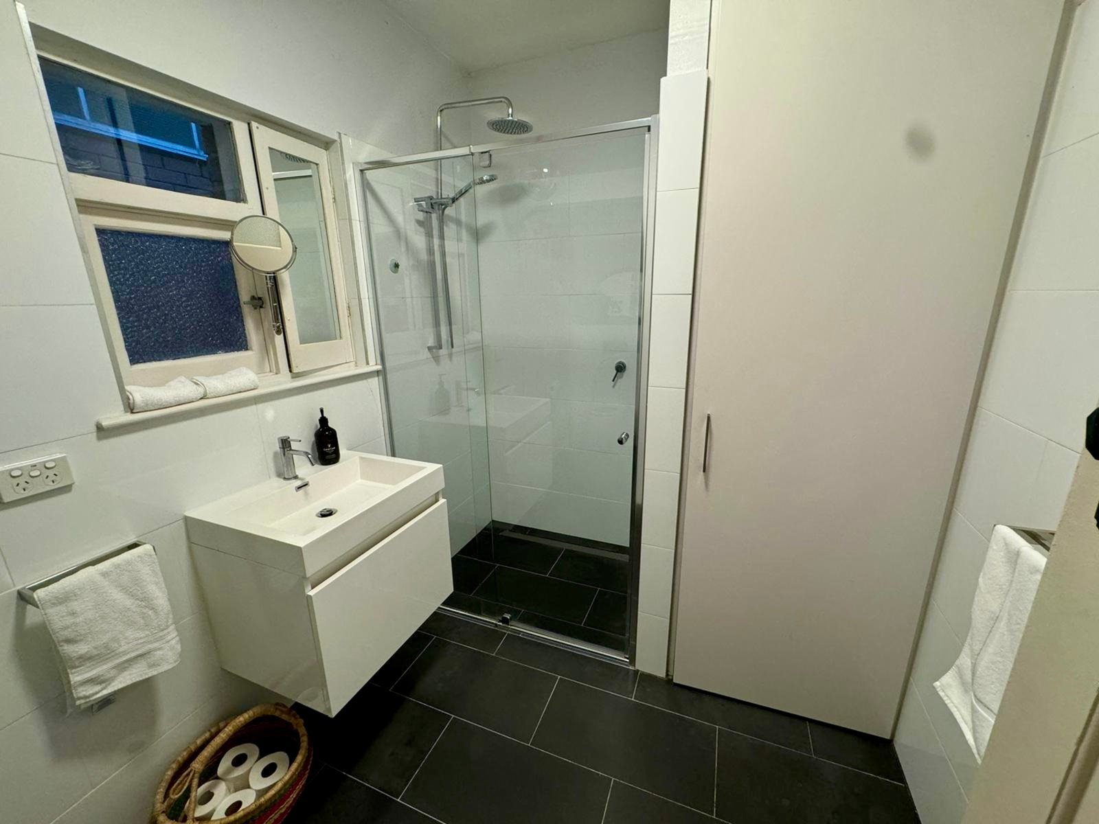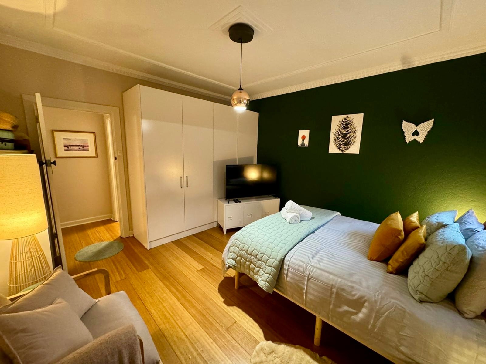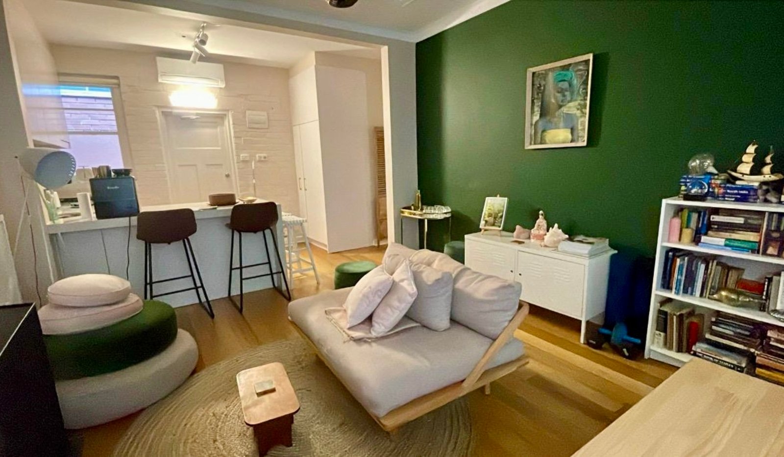 The spacious bedroom easily accommodates a king-sized bed, with flexibility to incorporate a home office zone. Complete with his-and-hers robes and access to an underground cellar for additional storage, this is a beautifully balanced home in an unbeatable St Kilda location.