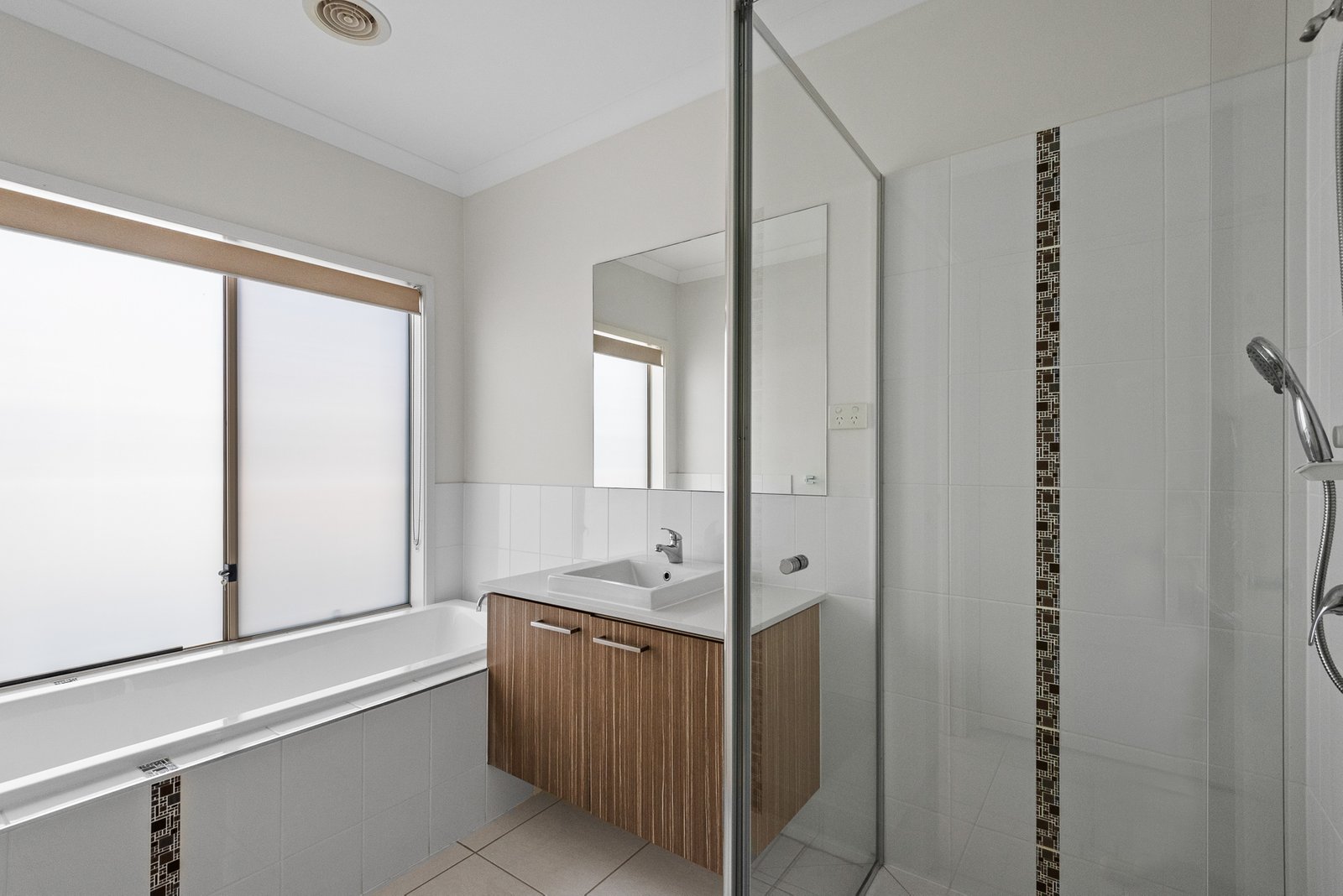 customised fence divider and also an area for a veggie patch. Notable extras include gas ducted heating, quality blinds, laundry with access to rear, plenty of storage and an alarm. Well positioned in the Somerfield Estate with exclusive schools just moments away and within easy access to parks public transport and Eastlink, This immaculate presented home will impress upon inspection.