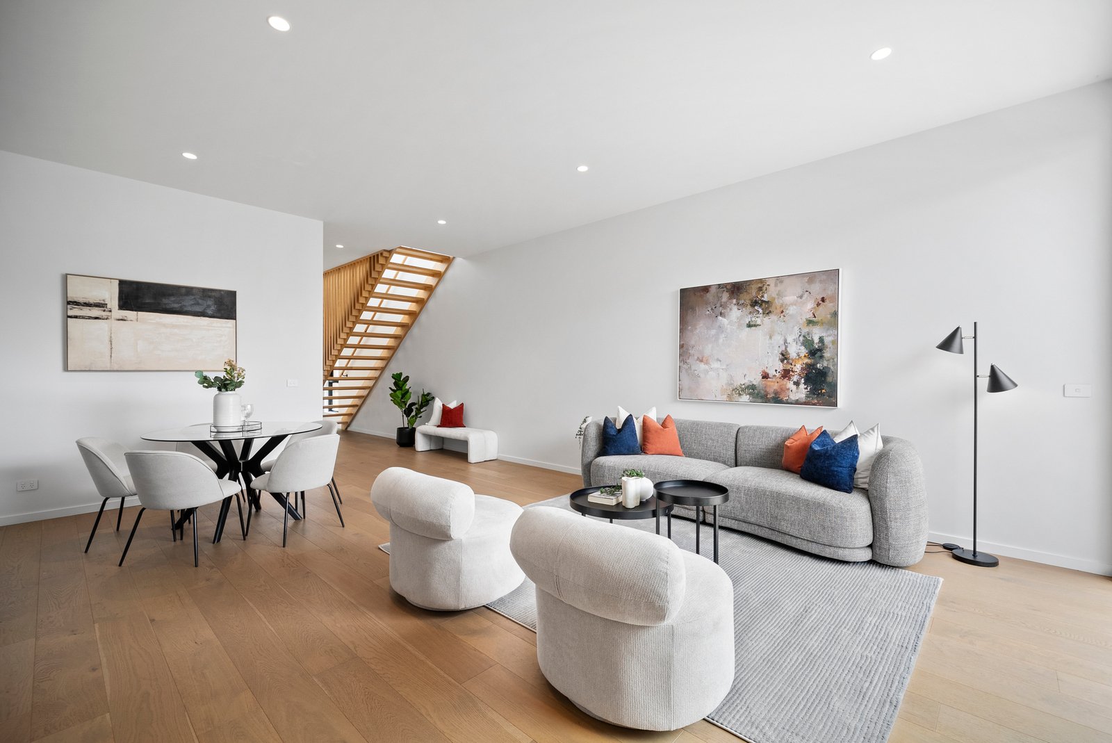 A refined expression of modern living, this beautifully crafted three-bedroom, two-bathroom town residence (plus powder room) offers effortless family convenience, secure double parking and low-maintenance luxury. Flooded with natural light, the generous open-plan living and dining domain flows seamlessly to a west-facing private backyard — the ideal setting for relaxed afternoons or alfresco entertaining.