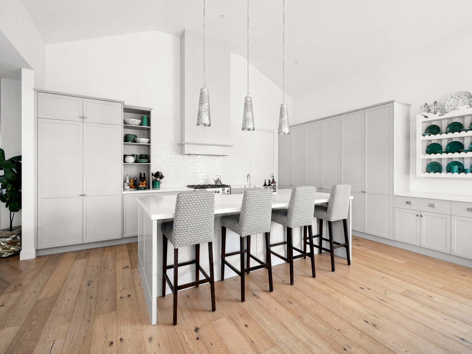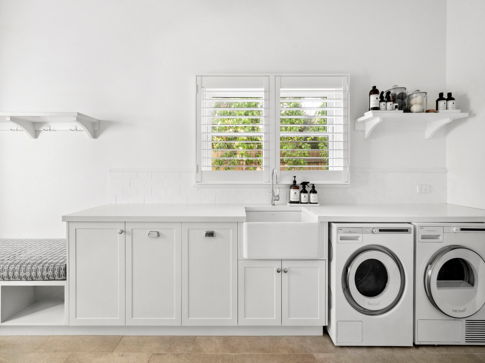 The kitchen has been designed with entertaining and practicality in mind — featuring a double-width island bench, butler’s sink, wide oven and a generous walk-in pantry that links directly to the laundry and mudroom. It’s a layout that works as beautifully for busy mornings as it does for hosting family and friends.