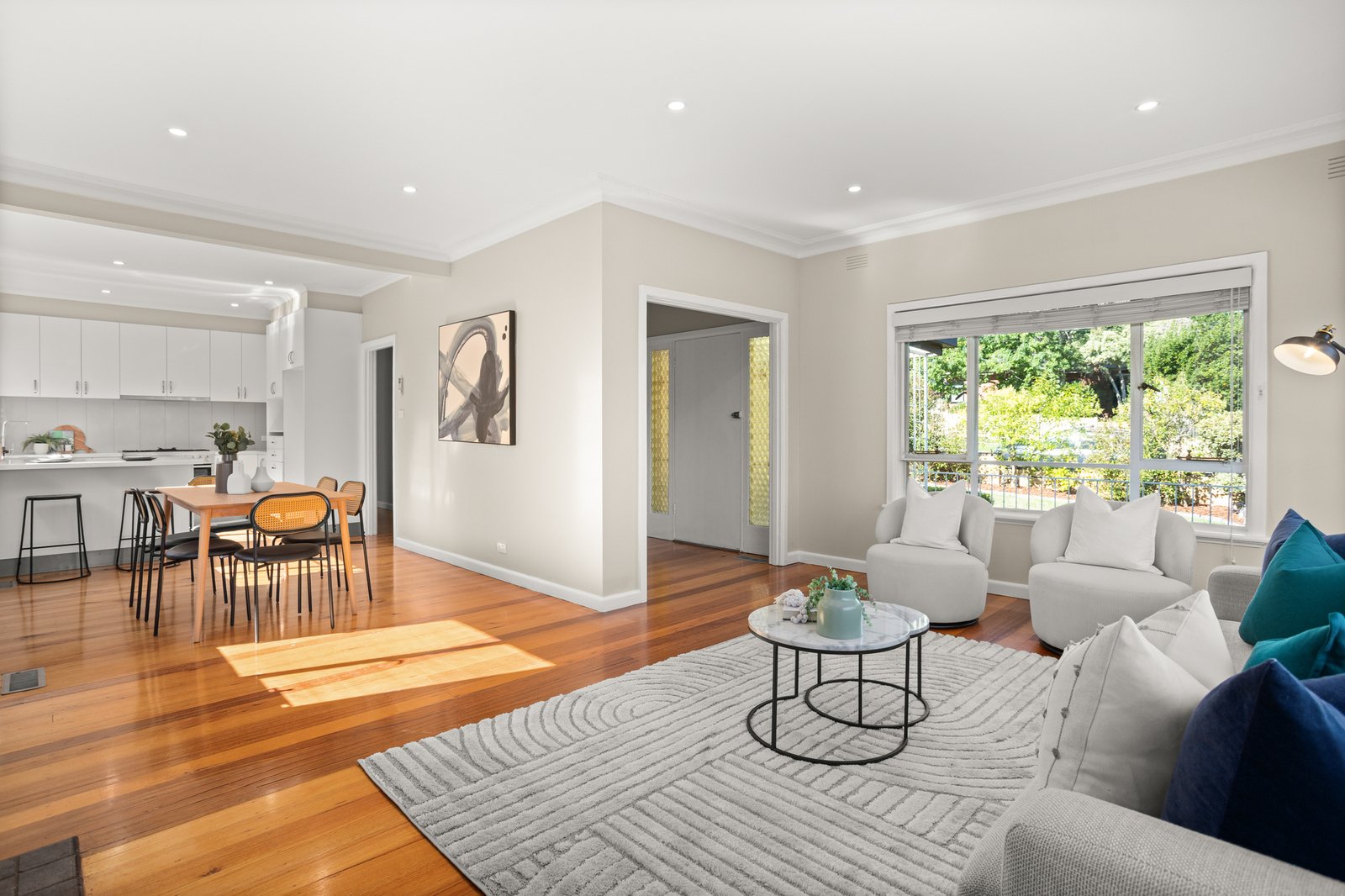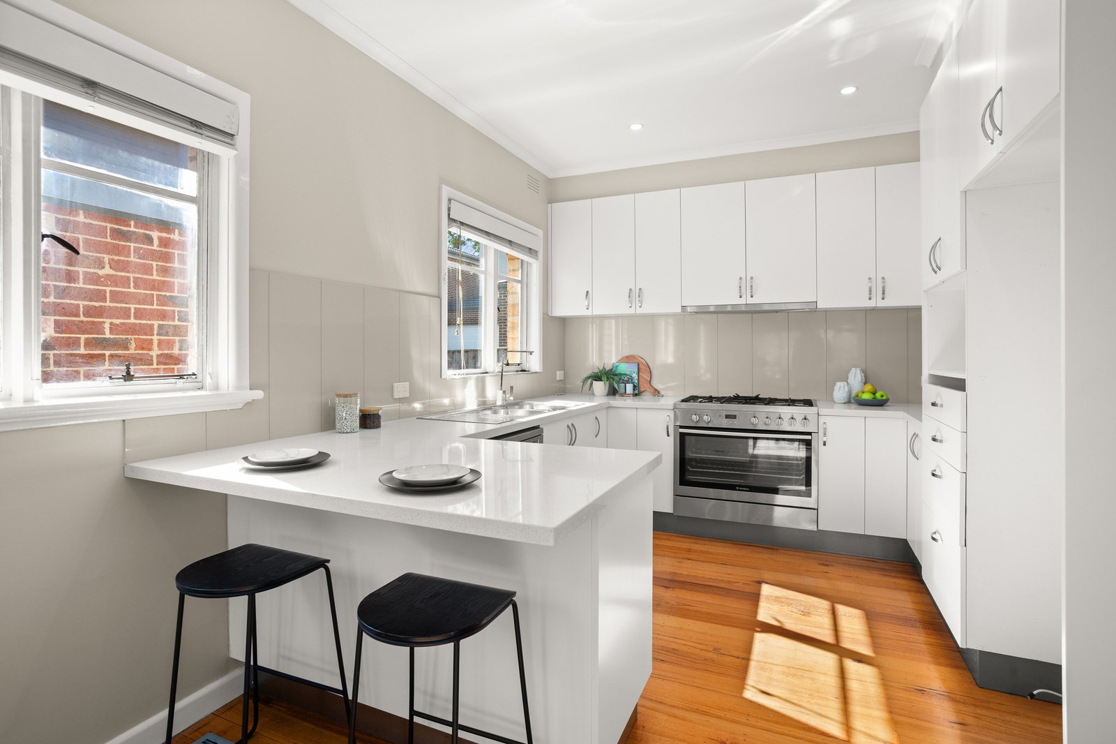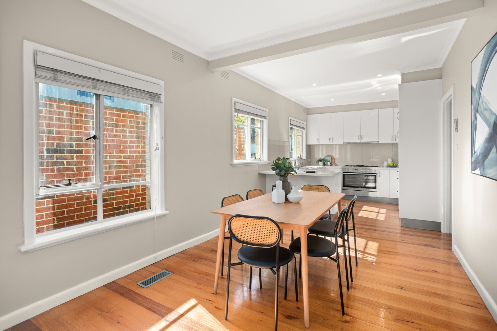 A blonde brick beauty with a façade of cascading corner windows, this home sits prominently on an easily managed corner block that balances independence with low maintenance ease. Renovated everywhere...