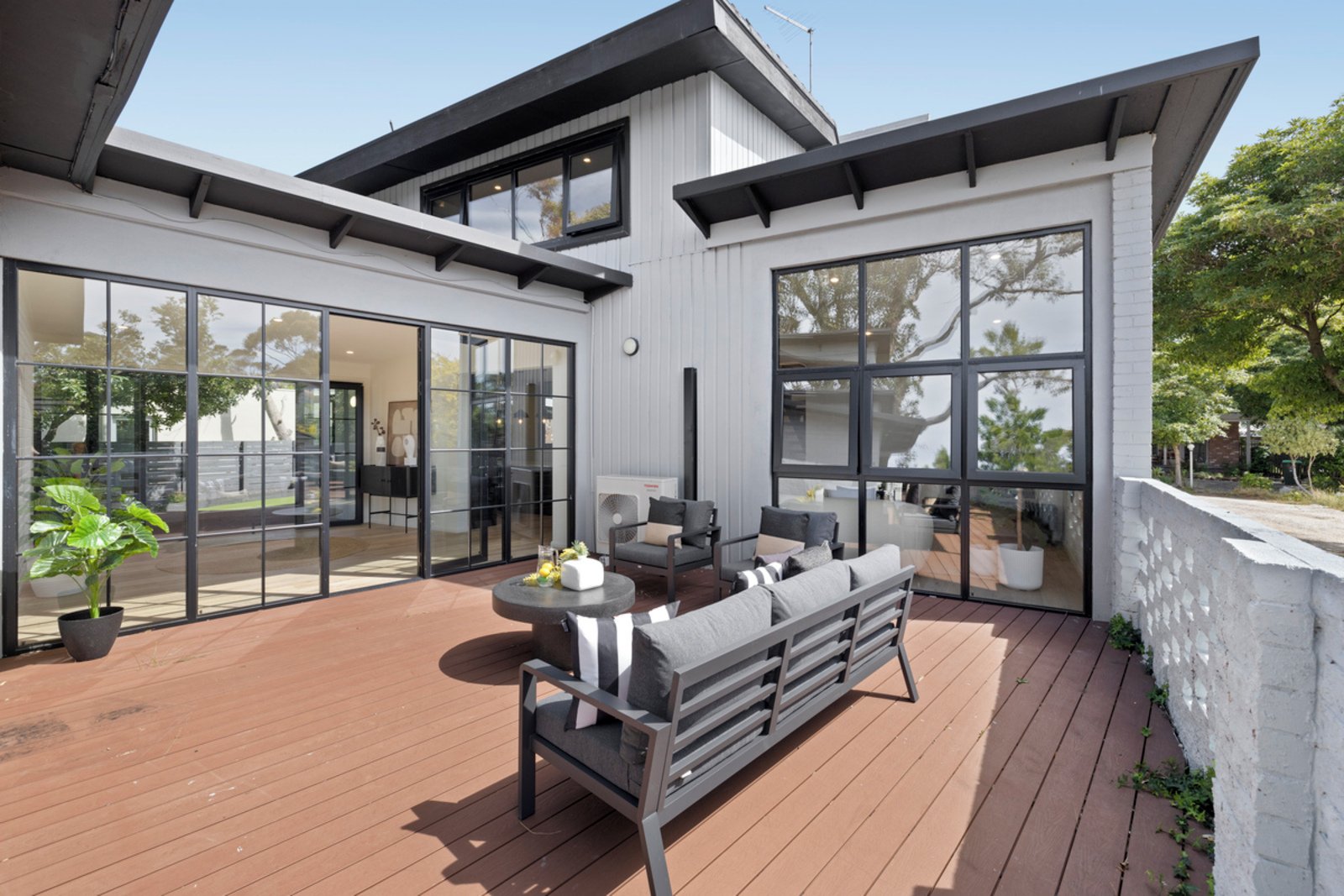 In addition, another entertainment deck extends into the northwest-facing garden, providing multiple options for enjoying the leafy surroundings.