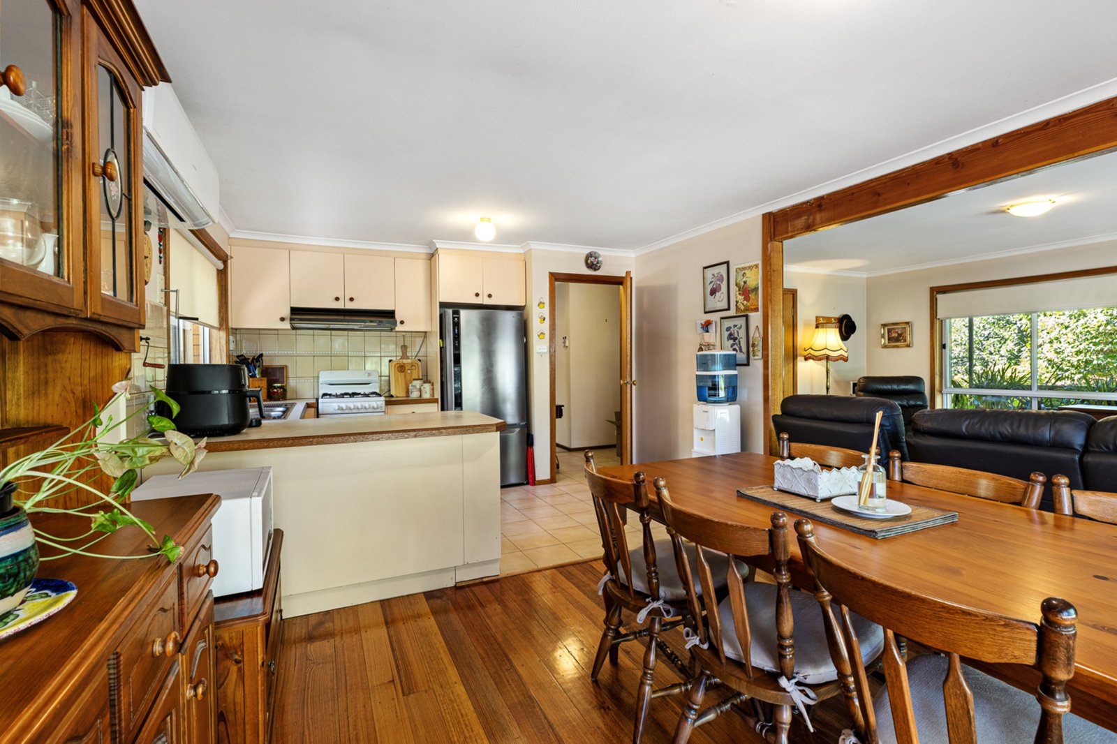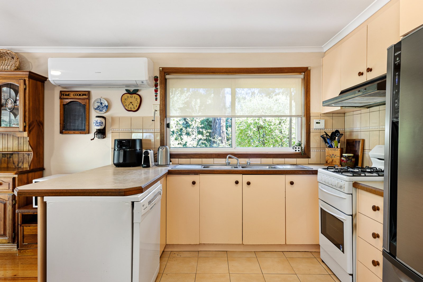 The home itself is a neat, single-storey brick residence offering comfortable living with scope to update and add value over time. Inside, you’ll find a welcoming living area that provides a cosy space to relax, flowing through to a functional kitchen and dining zone. While the interiors are somewhat dated, they have been well maintained, offering a solid foundation for those wanting to modernise and make it their own. Comfort is ensured year-round with ducted heating throughout the home as well as a split system providing both heating and cooling.