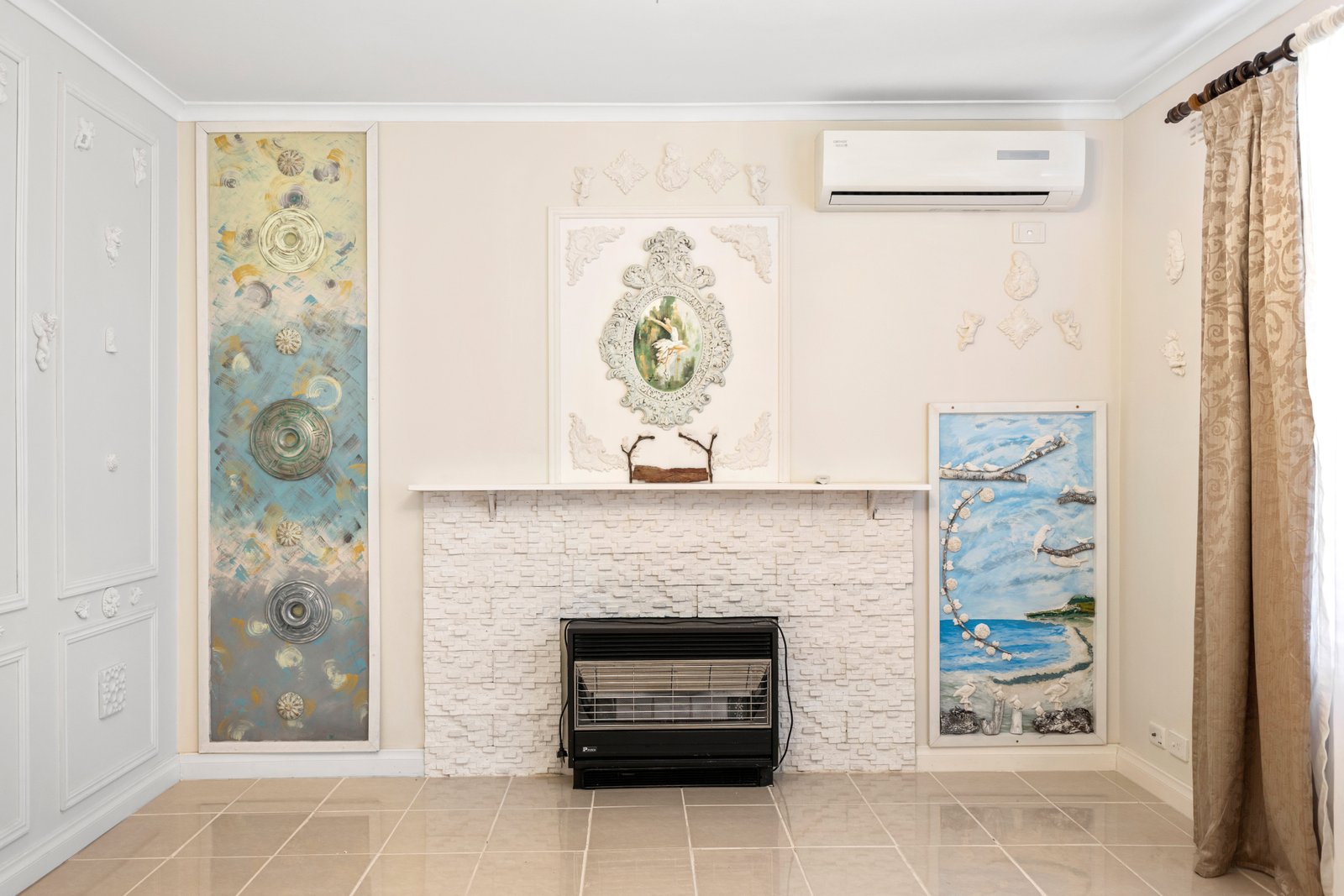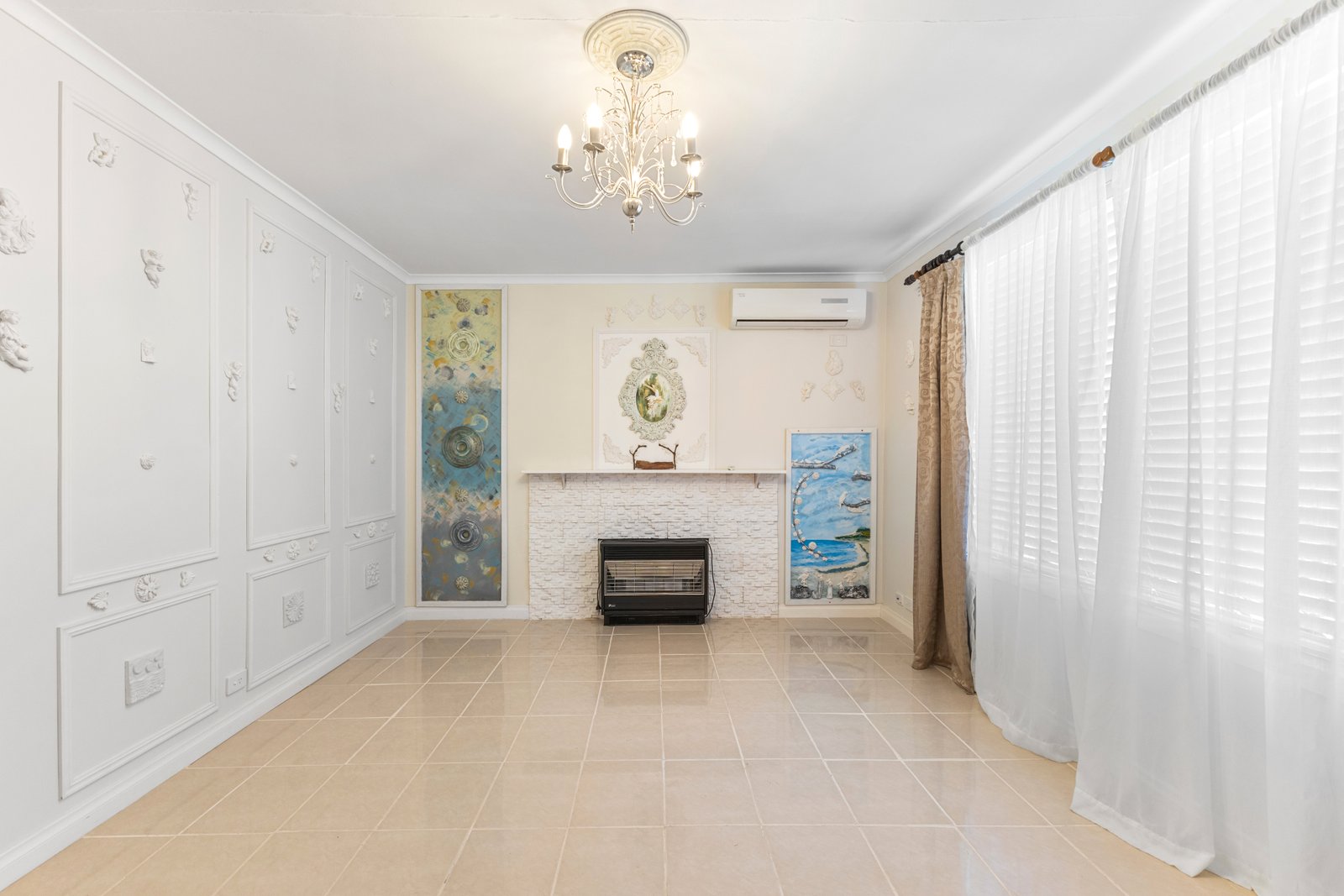 • Light-filled living area with split system and wall heater