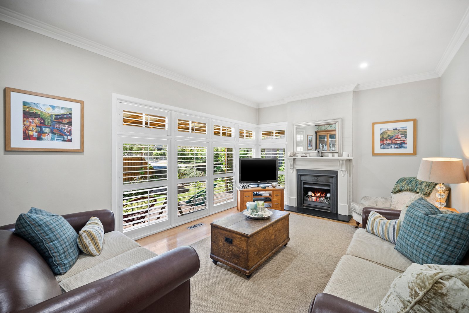 Beyond the entry, an elegant lounge centred on an open fireplace introduces the interior with windows that draw the greenery inward, reinforcing the home’s relationship with its leafy surrounds.
