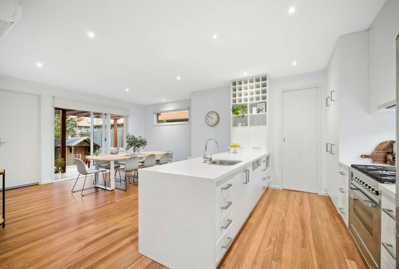 Maximising its compact site with dual living zones, this innovative residence features a sleek kitchen with premium stainless-steel appliances, free-flowing lounge and dining areas with bi-fold doors, and a seamless connection to the outdoors. Entertain in style across low-maintenance surrounds, including expansive decked areas, a family-friendly cubby house, and a lap pool and spa. A lush north-facing courtyard adds to the alfresco appeal.
