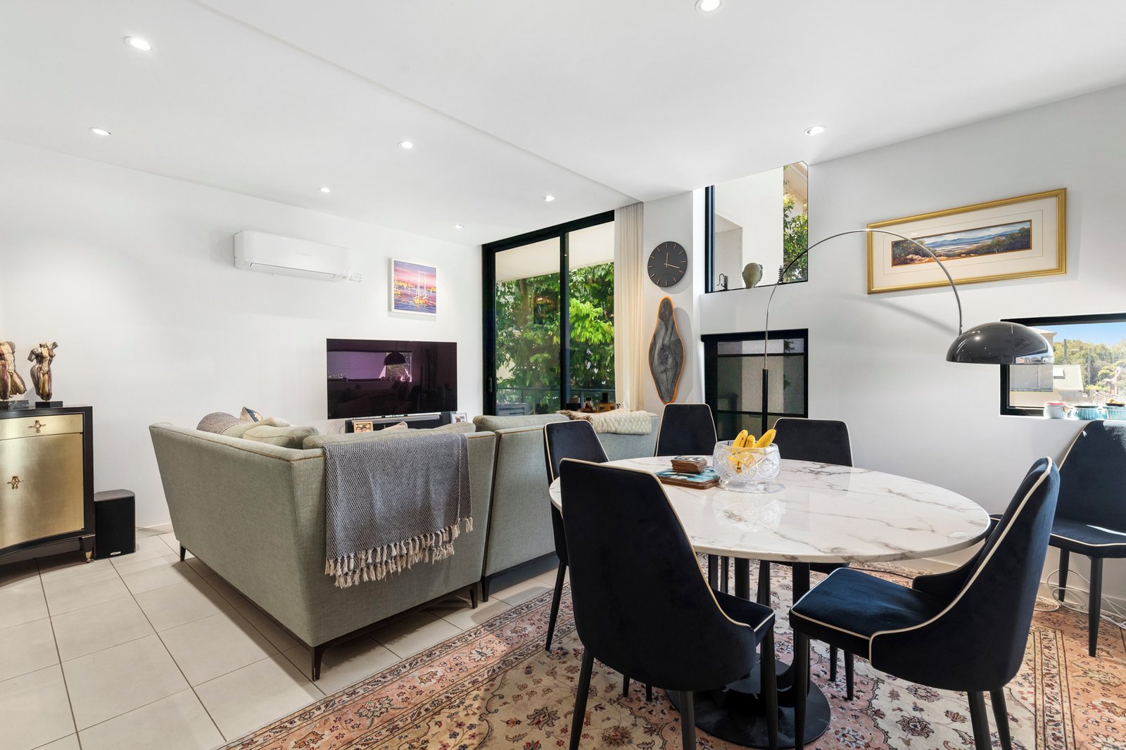 Step inside to a spacious sunlit living area that opens to a private undercover terrace, ideal for relaxed mornings or evening entertaining. The contemporary kitchen features a breakfast bar and quality appliances, while the dedicated dining zone is enhanced by striking architectural windows that flood the space with natural light.