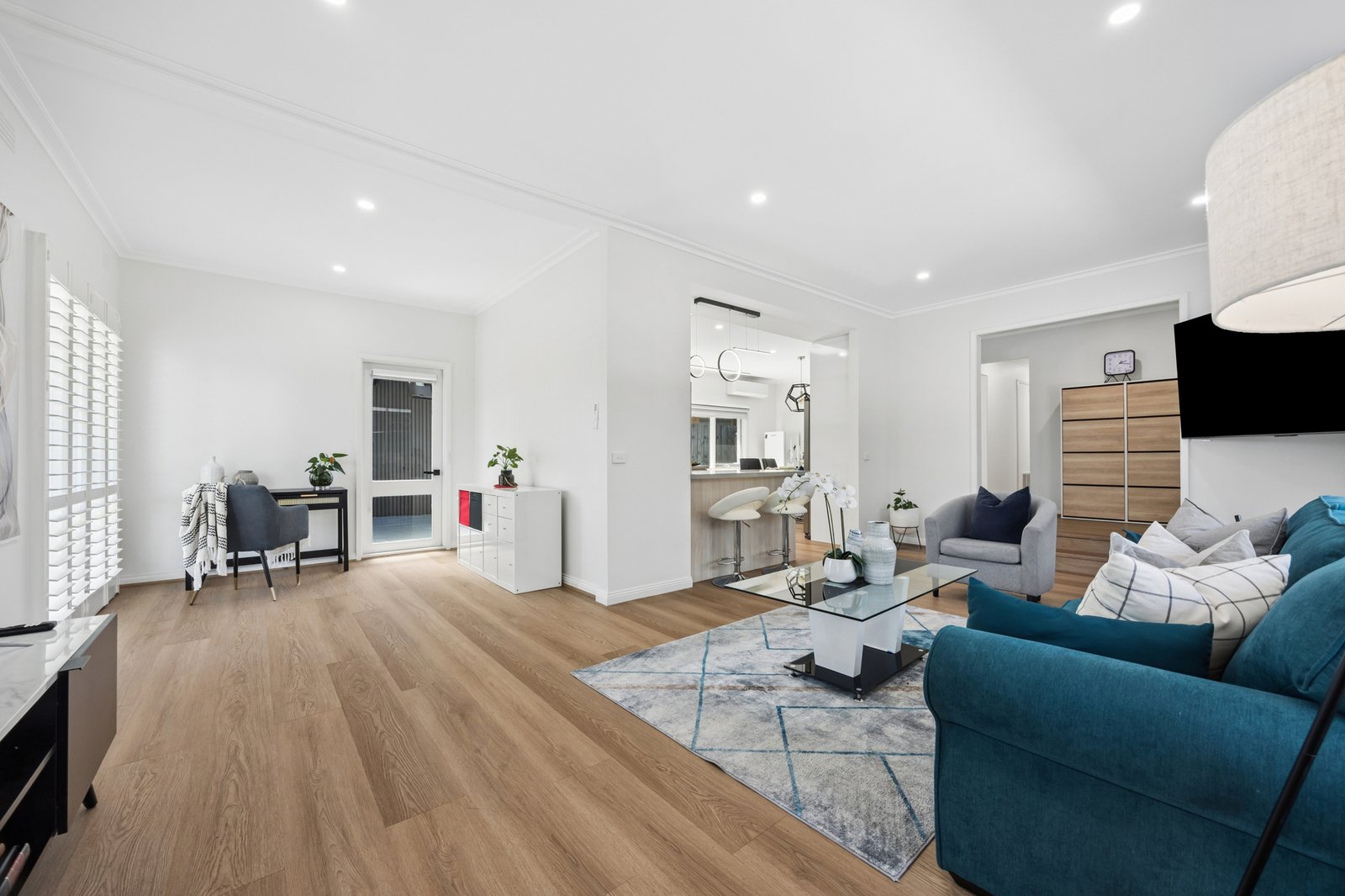 The inclusion of four bedrooms is a bonus for families – each one with fitted wardrobes, the main with walk-through wardrobing to its smartly finished ensuite. A second sleek bathroom with handy separate WC is also on offered together with a laundry leading out to the yard, while split system heating/cooling throughout, a double carport and large solar array round off the sparkling opportunity.