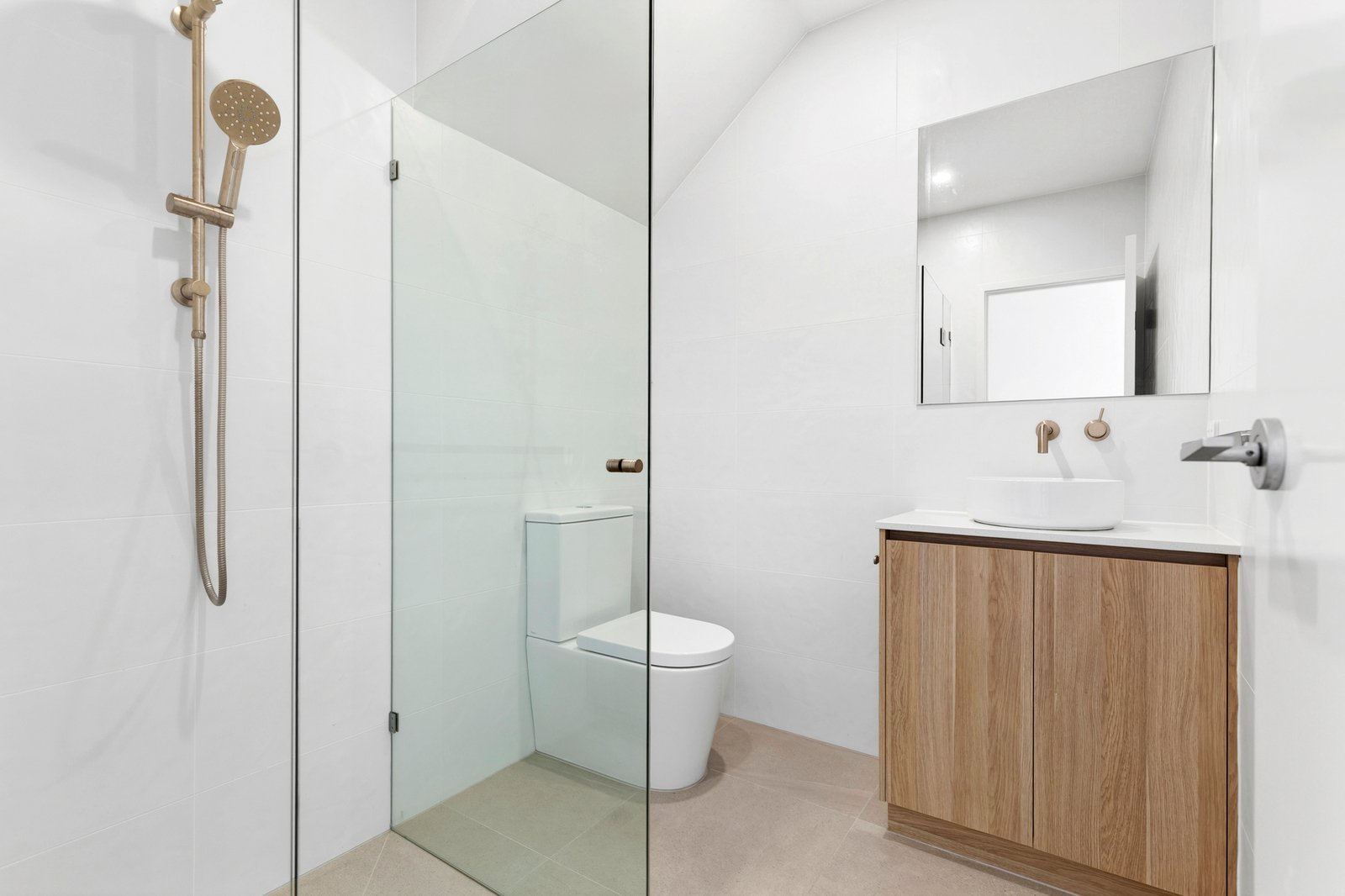 Comprising two bedrooms, the ground floor master provides a peaceful retreat with built-in robes, direct access to a private courtyard and a beautiful ensuite finished in floor to ceiling tiles, quality fittings and modern vanity with stone benchtop. The second bedroom is located upstairs, includes built-in robes and is serviced by an elegant second bathroom in keeping with the tasteful finishes of the home.
