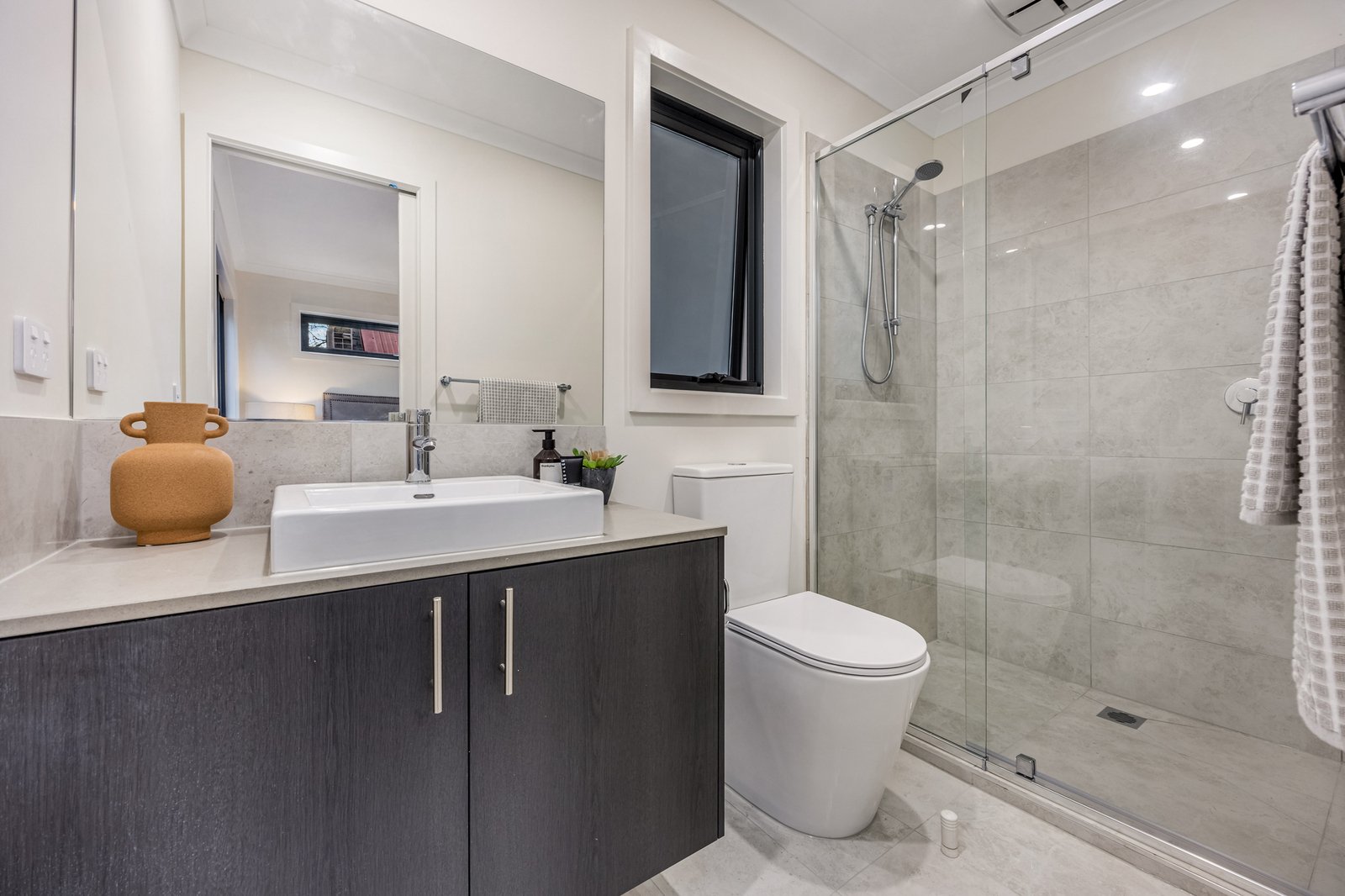 Designed and built to an exceptional standard by Sketch Building Design, the home unfolds across three impressive levels with thoughtfully crafted interiors throughout. Upon entry, the layout reveals a peaceful lower-level master bedroom complete with a built-in robe and private ensuite, offering a quiet retreat away from the main living zones.