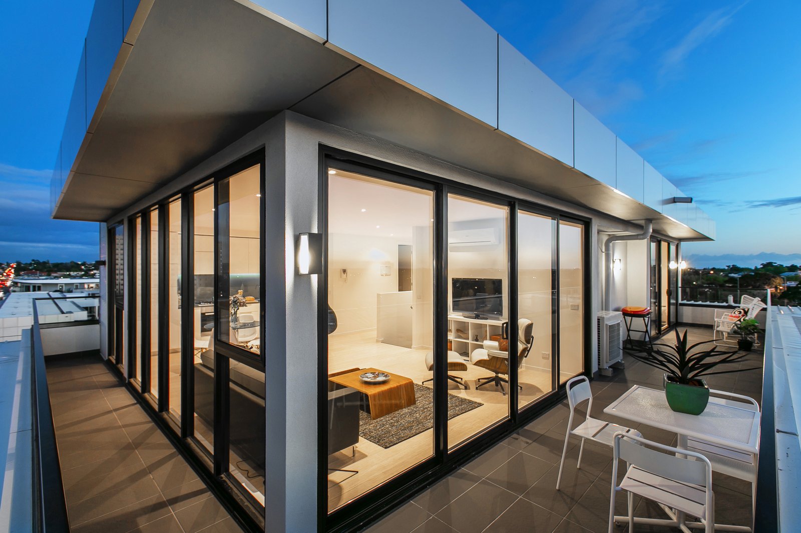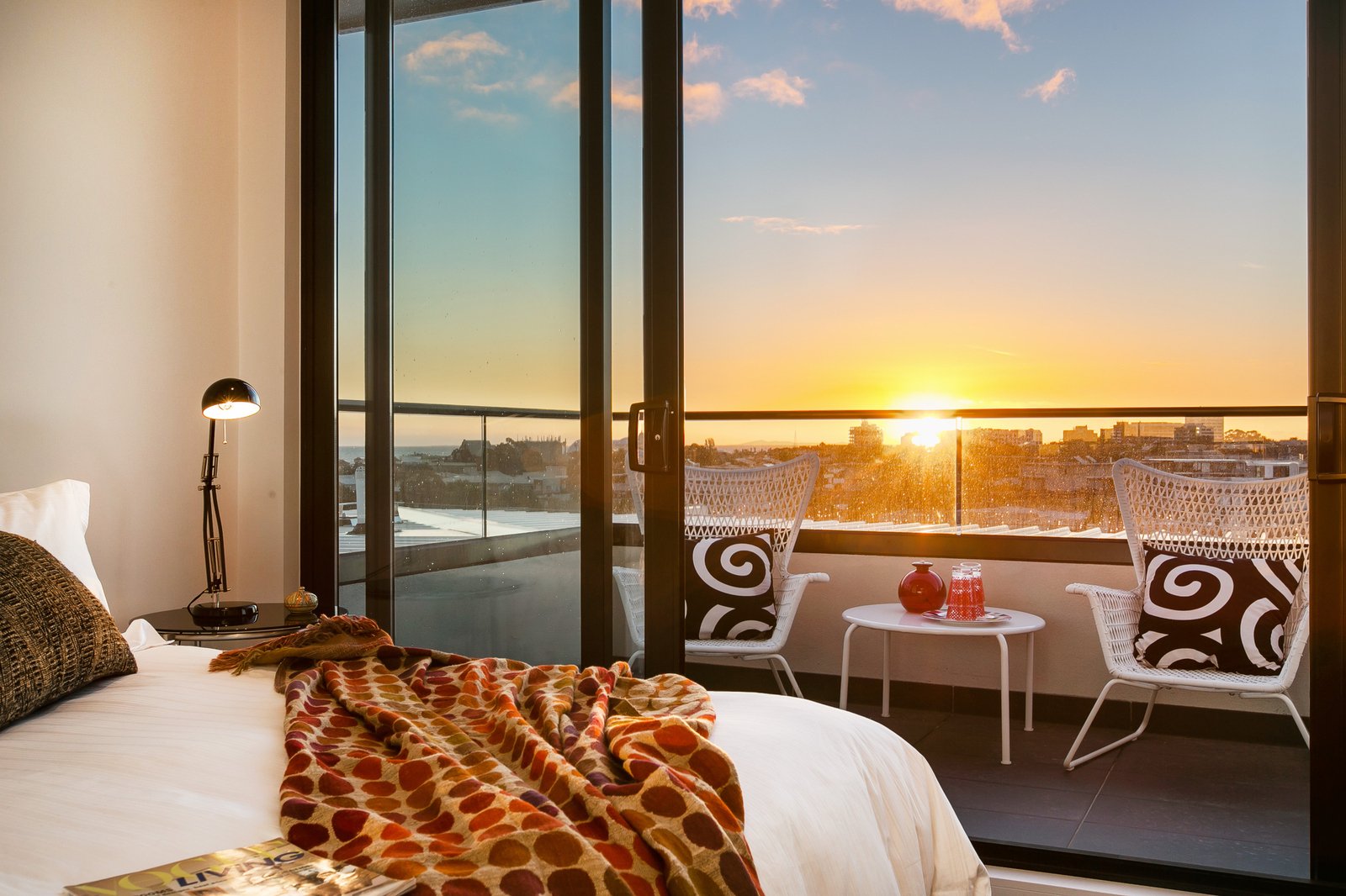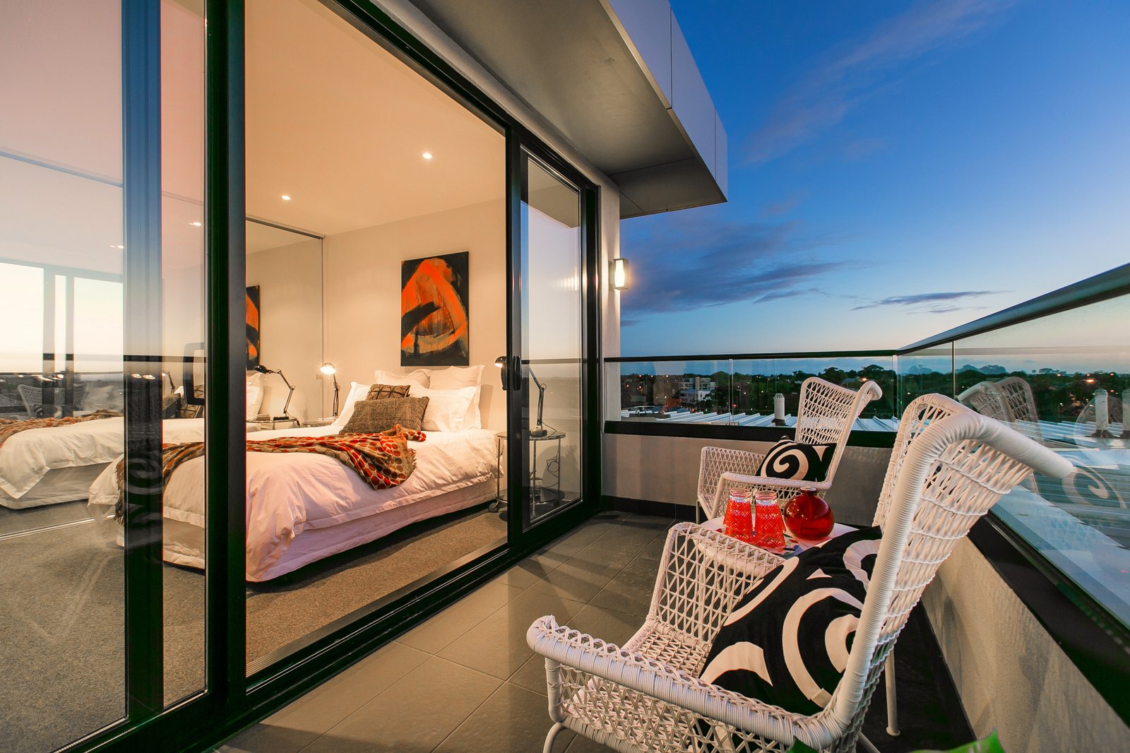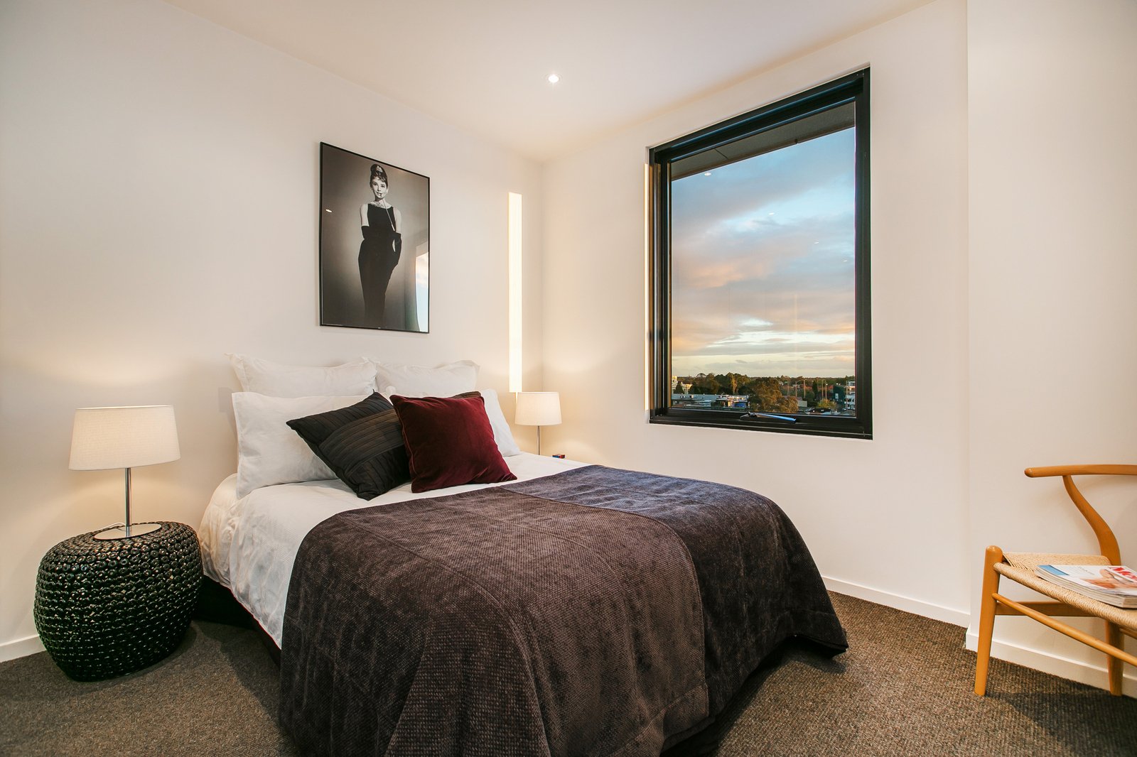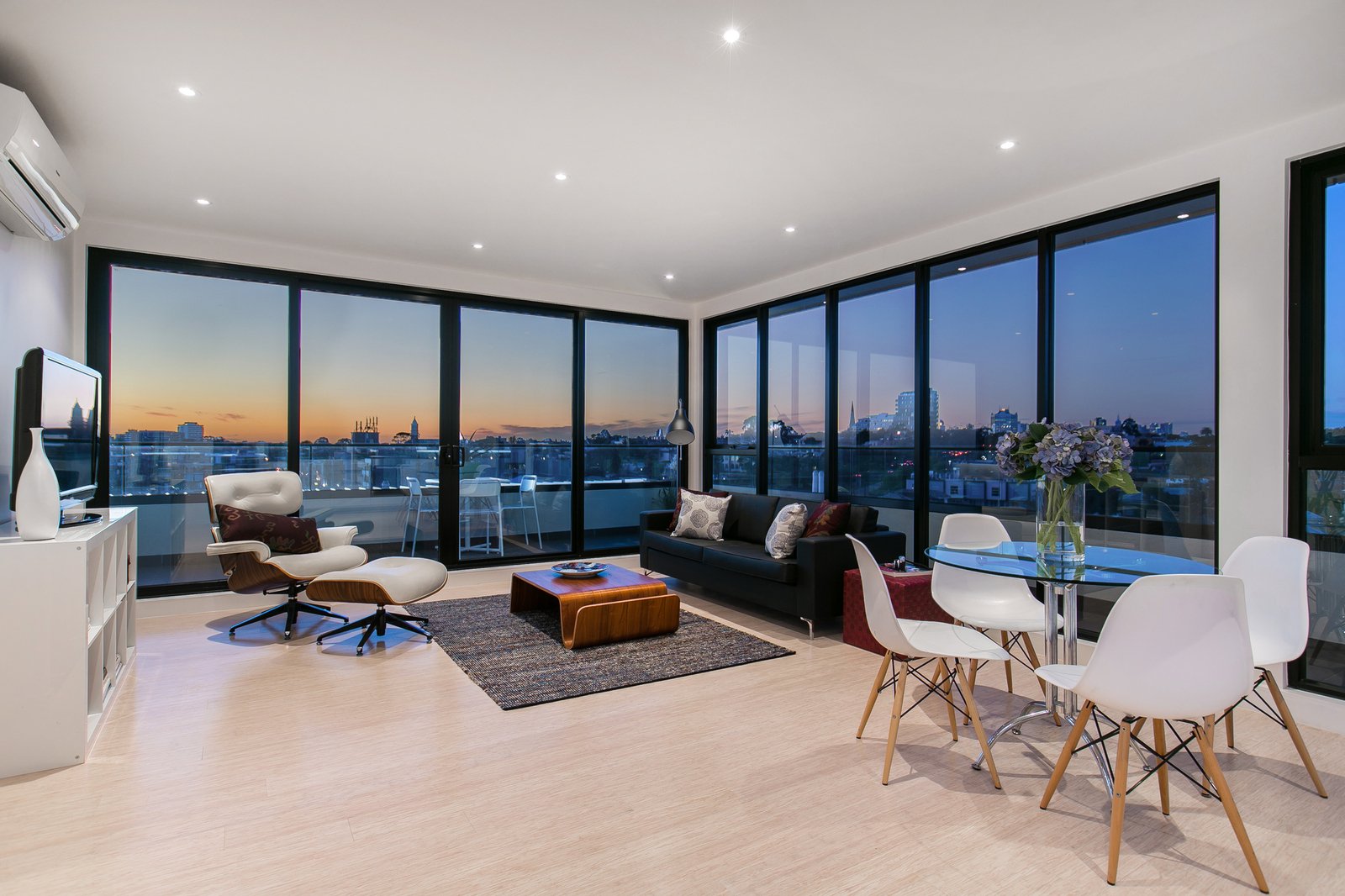 Bathed in natural light, the penthouse offers spacious open-plan living and dining that flows effortlessly to a large balcony capturing sweeping 360-degree views across St Kilda. A modern chef’s kitchen sits at the centre of the home, complete with stone benchtops, integrated fridge, Mielie appliances, dishwasher and gas cooking—perfect for everyday living or entertaining.