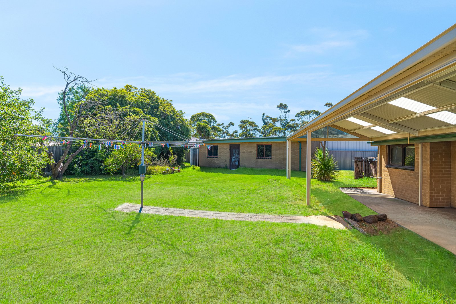 Outside, the expansive backyard provides plenty of space for future improvements, entertaining, or additional shedding, complemented by a lock-up garage.