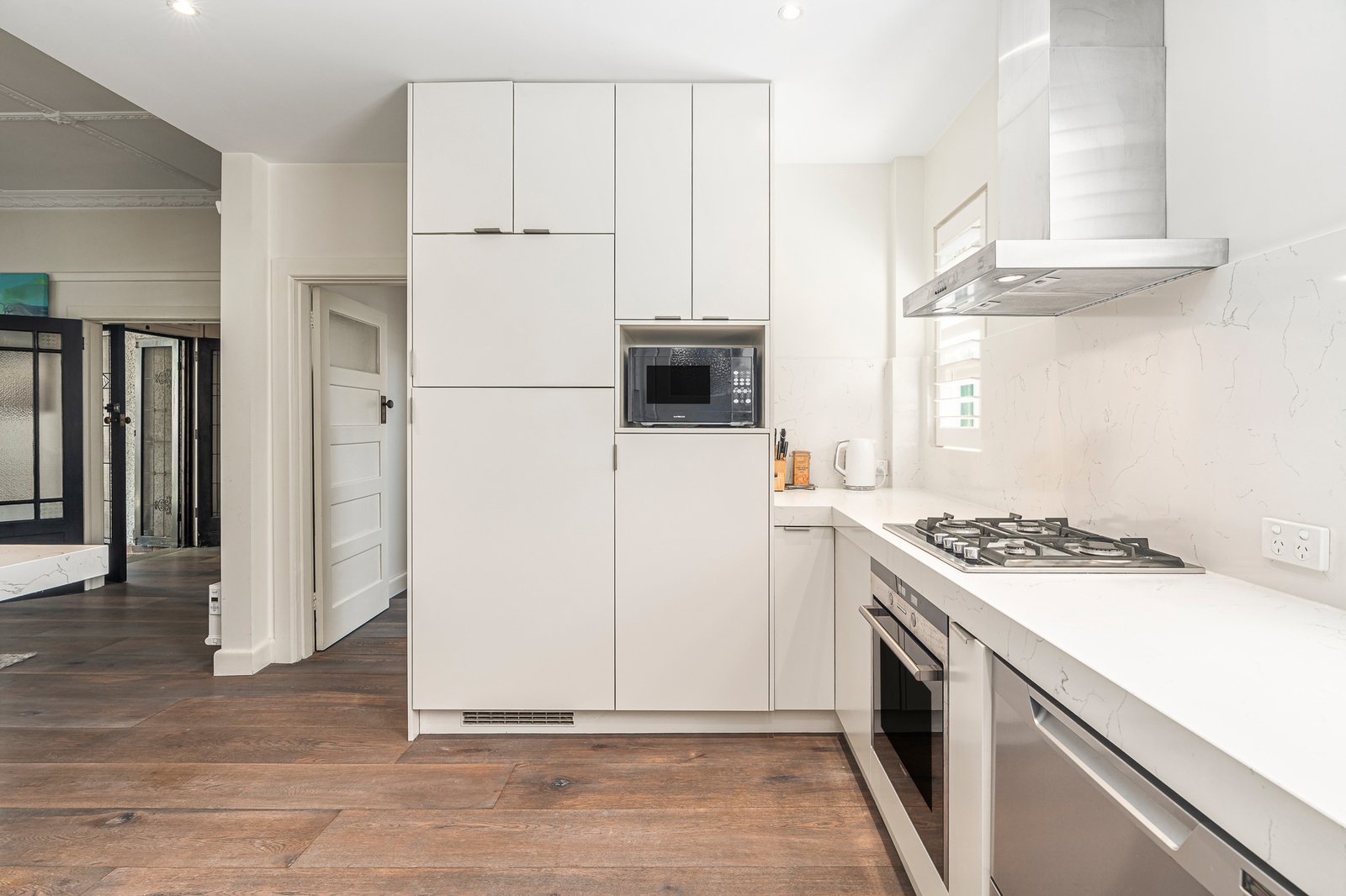 Wide hallway entry leads to generous open plan living and dining, complemented by a stone topped kitchen with high end appliances and an integrated fridge. Two spacious bedrooms include a well proportioned main bedroom with built in robes, while a sparkling central bathroom and integrated laundry add everyday practicality.