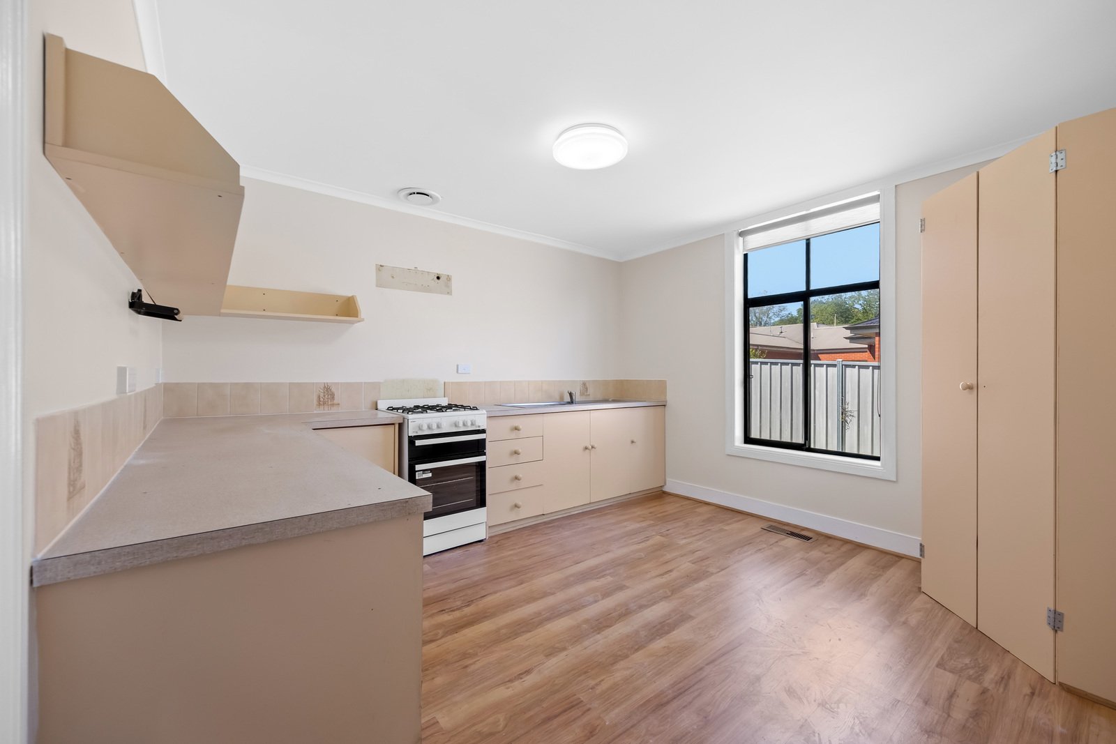 - Kitchen with gas cooktop, electric oven and ample cupboard space