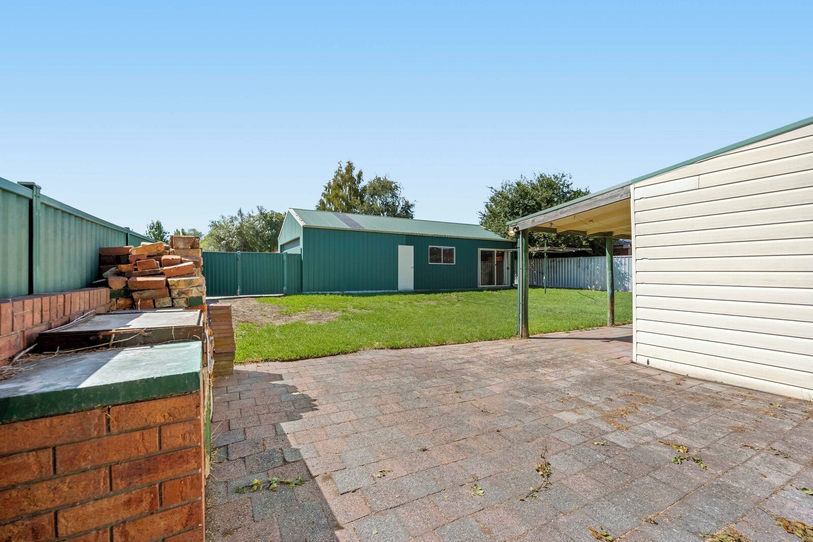 - Spacious backyard with covered patio