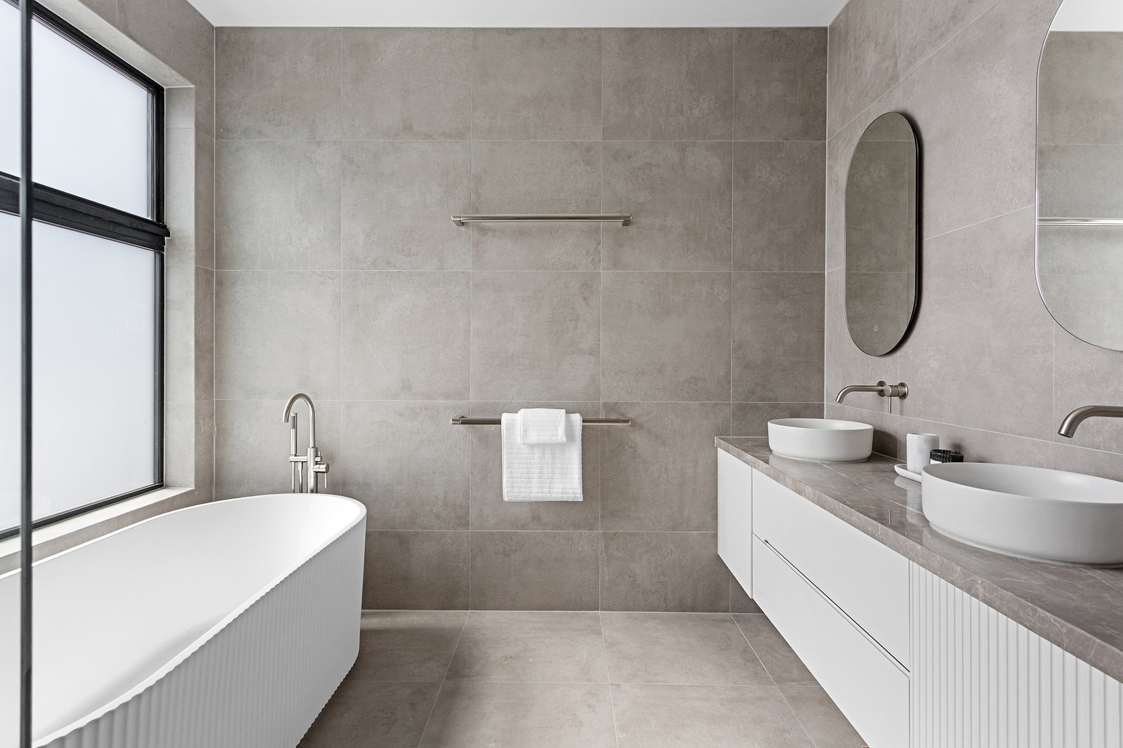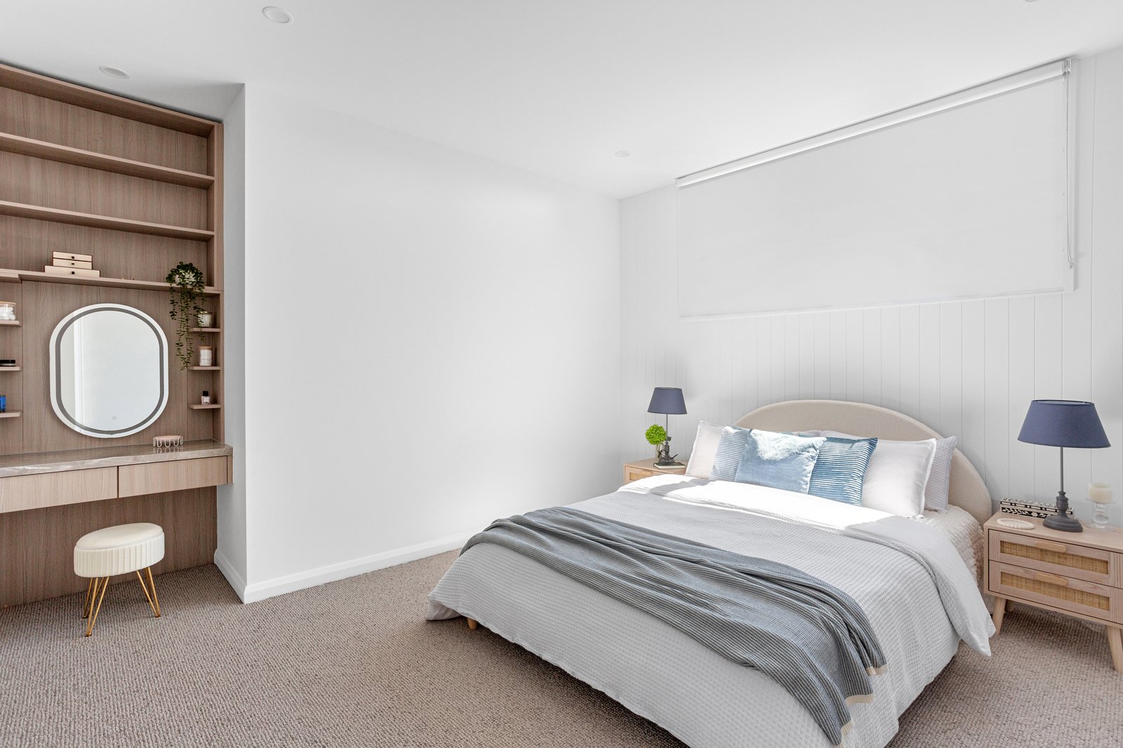 Thoughtful proportions stretch a four bedroom, two bathroom layout, headlined by a ground-floor master suite with make-up station, fully-fitted custom walk-in robe, and lavish ensuite with continued tundra grey marble. Sharing in the artistry of the well-planned layout, the secondary lounge opens directly to a northern aspect across the ridge of Beleura Hill, with fixed VLUX ceiling windows maintaining a bright ambience throughout the first floor.
