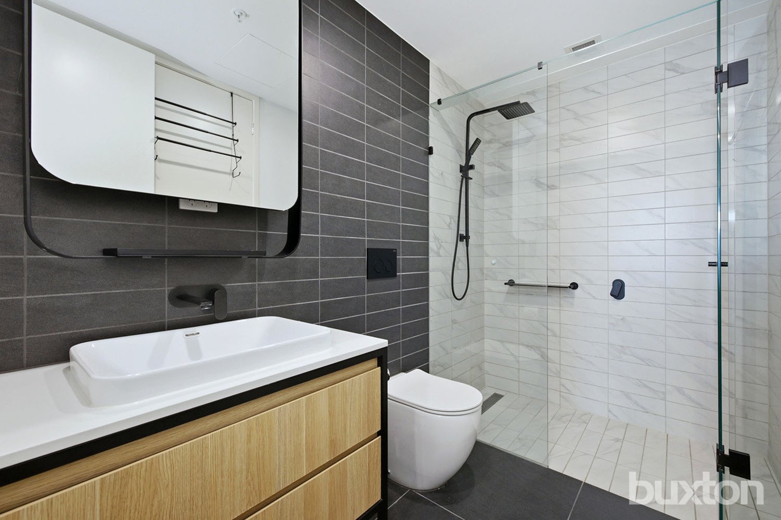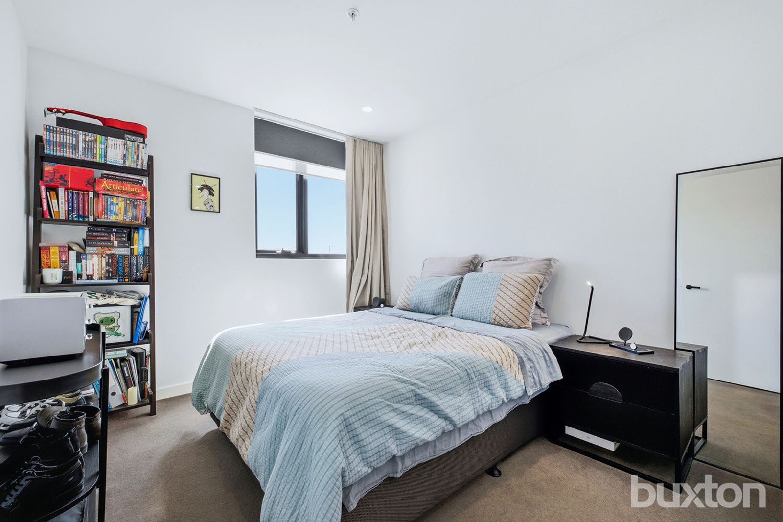 Positioned on Level 3, this beautifully designed one-bedroom apartment delivers a perfect balance of style, comfort and convenience. The light-filled living area features striking chevron-pattern timber flooring, while the generously sized bedroom is finished with plush carpeting to create a warm and relaxing retreat.