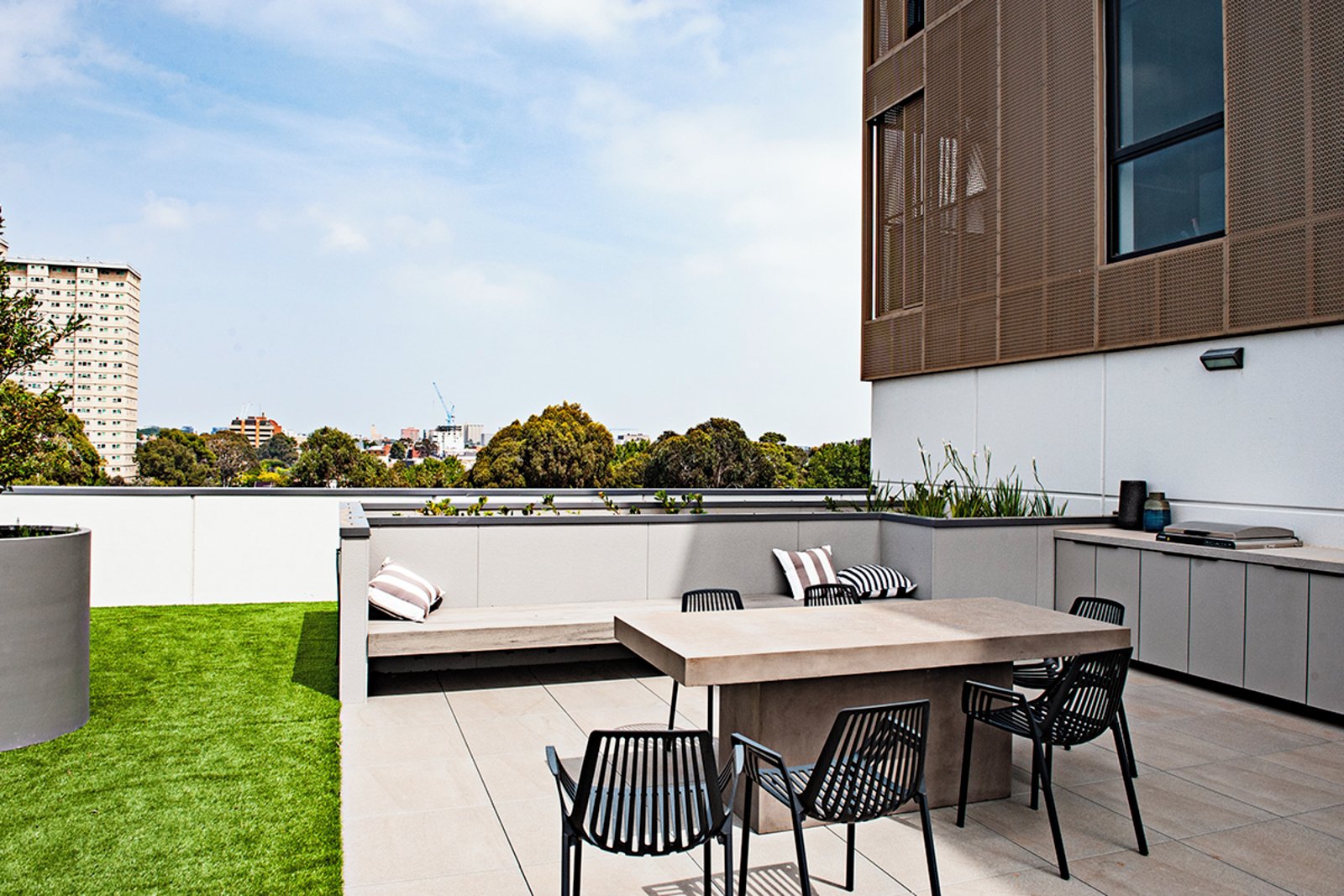 The building offers incredible amenities with a terrace garden, rooftop barbecues and dining spaces, a residents' lounge and library, an infinity edge pool, and a communal gym with the latest equipment - work out surrounded by glass walls and one hundred and eighty degree views!