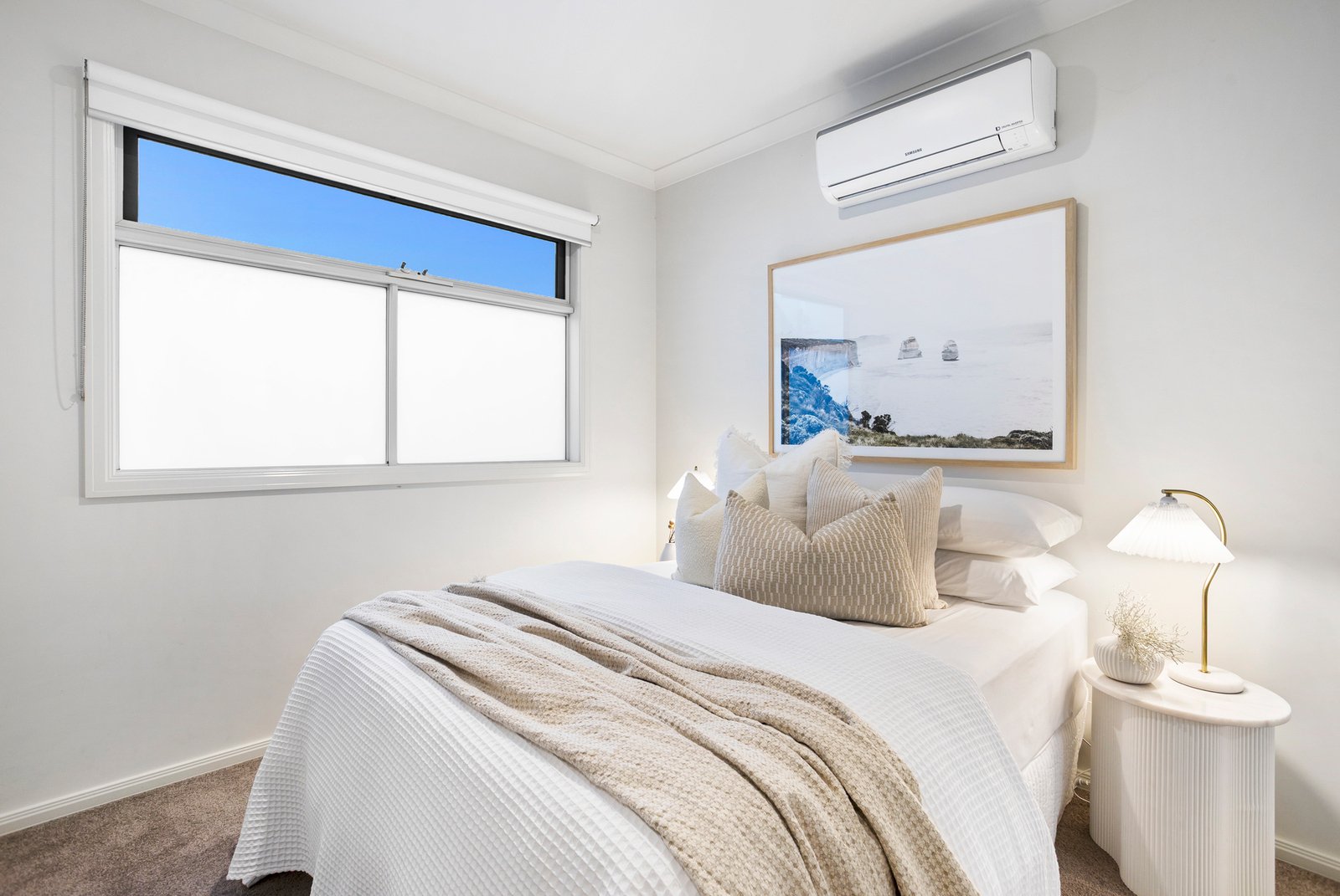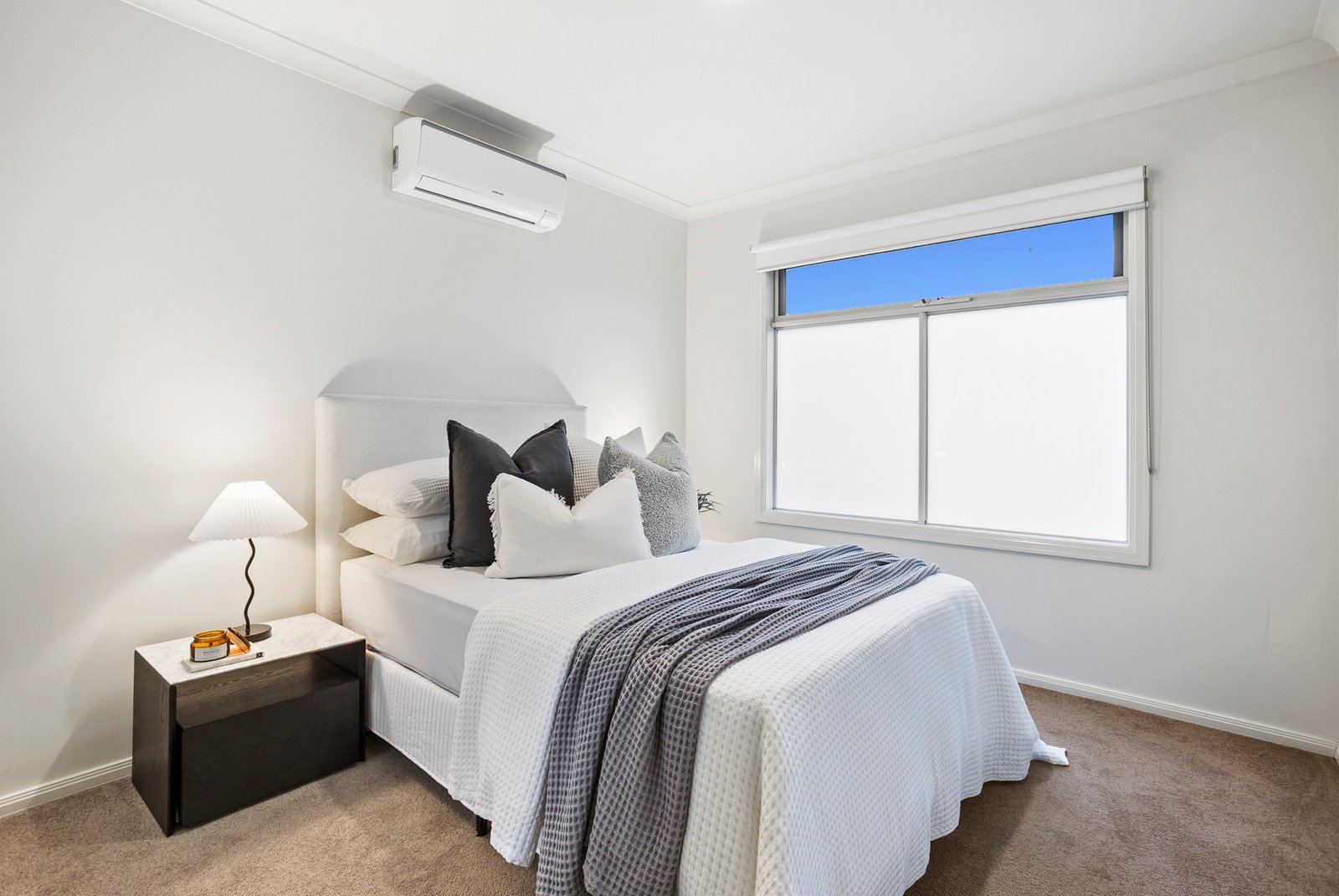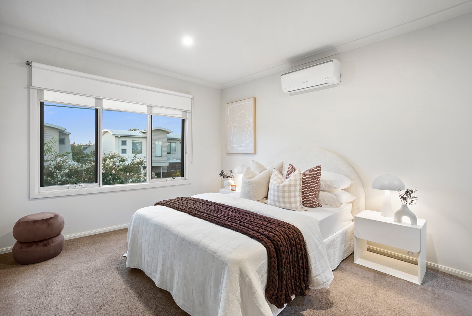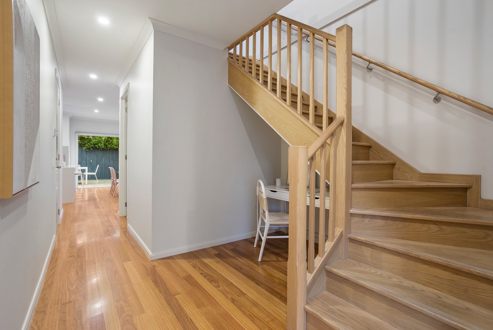 Three spacious bedrooms each come complete with built-in robes, while the master bedroom enjoys the luxury of a private en suite. Solid Blackbutt hardwood floorboards run underfoot, and split-system air conditioning in every room ensures effortless comfort whatever the season brings.