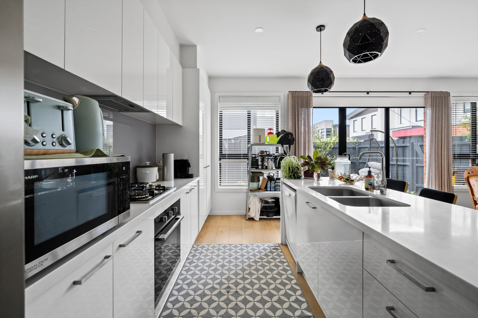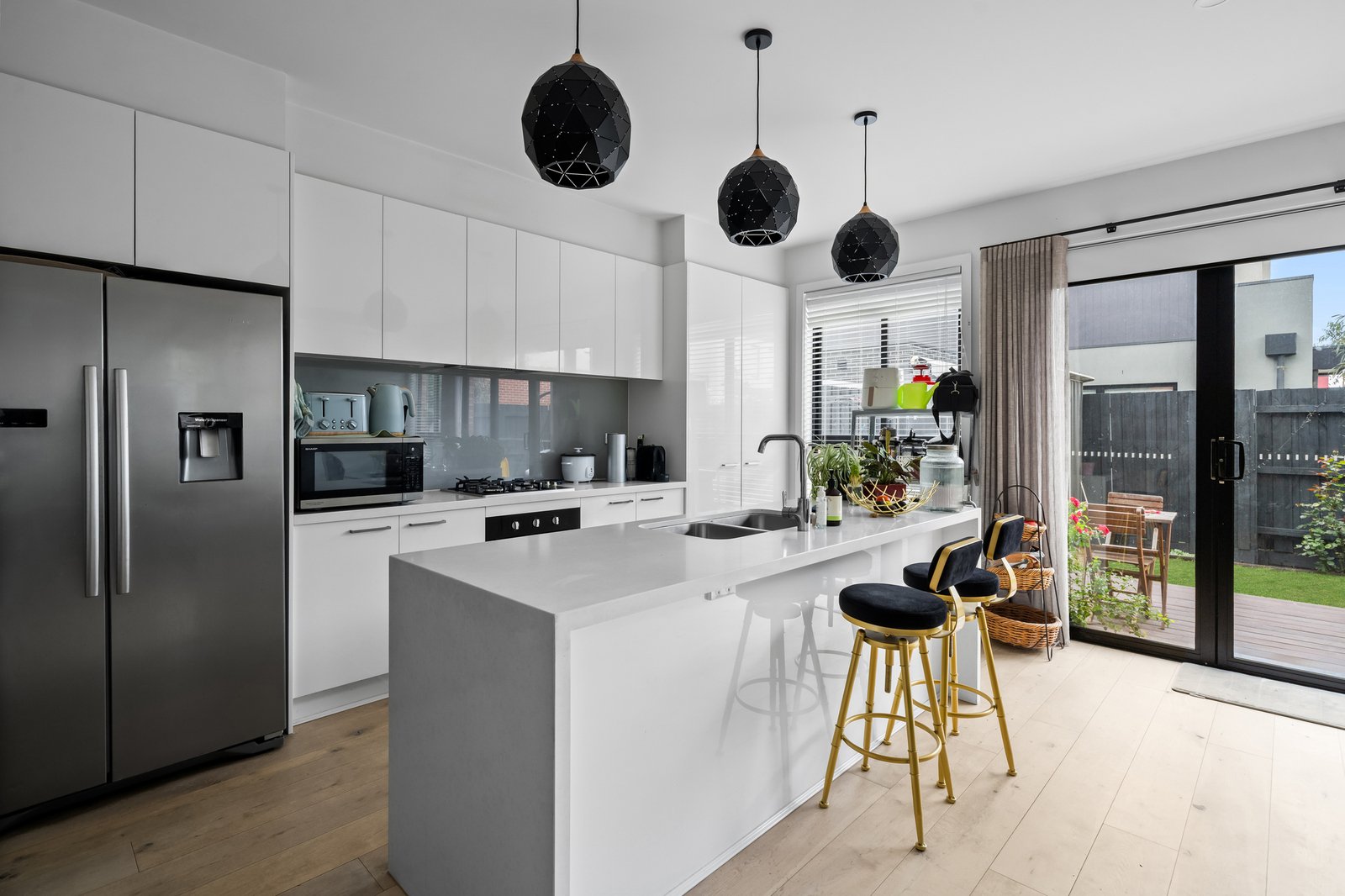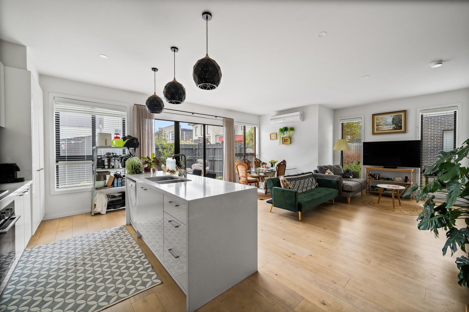 Inside, the open plan layout reveals a bright living area that flows effortlessly into the kitchen, complete...