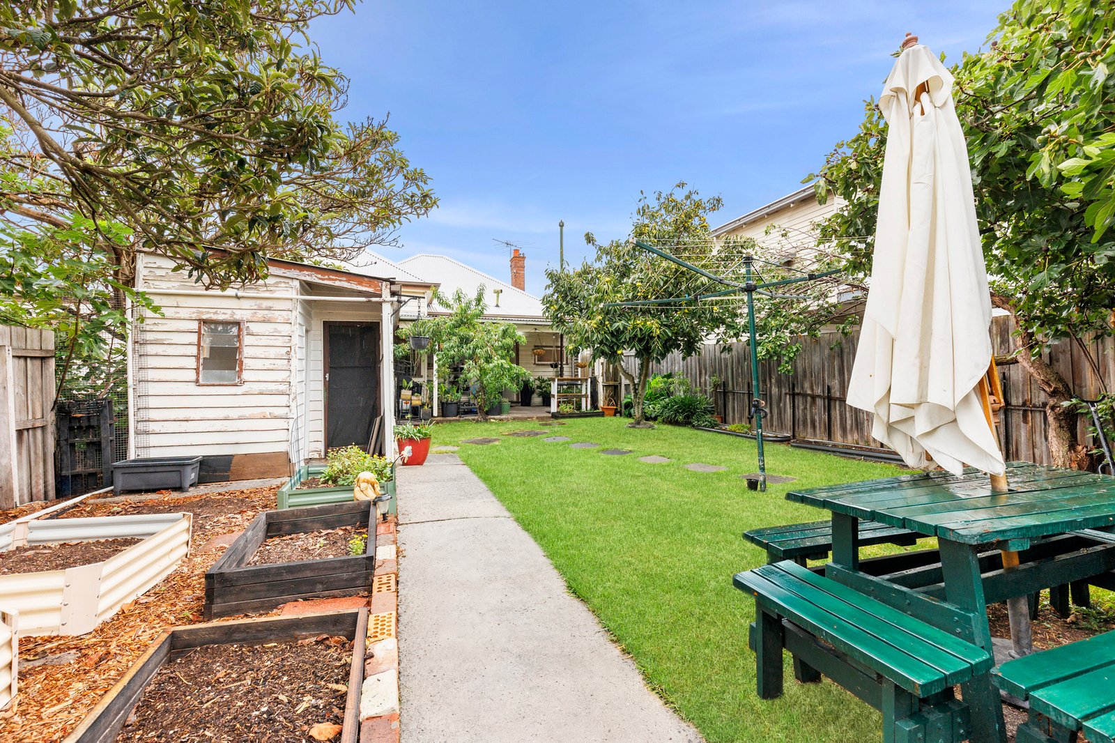 Original character combines with modern updates to offer contemporary comfort and functionality, with additional potential to grow. Set in a prime city-fringe location, on a 482m2 (approx.) north facing allotment with excellent rear lane access, the home accommodates easy living now, with future potential to enhance or extend (STCA) and add value. Walk to the Garden Street shops and cafes, Eastern Gardens, hospital precinct, local primary schools, Geelong High, while only minutes from the Waterfront and CBD, this central position delivers an enviable lifestyle of convenience and connectivity. On entry to the home, well-preserved character details including high ceilings, pressed metal features and picture rails showcase the charm of its original era, while modern flooring adds a contemporary touch. An inviting living area off the entry features a brick mantel, complemented by split system heating and cooling for year-round comfort. The adjoining kitchen and dining area introduces dado wall panelling, with the updated kitchen incorporating stylish timber benchtops and a 600mm oven and cooktop. The main bedroom is privately zoned at the rear, featuring built-in robes and an ensuite. Two additional bedrooms are generous in size, also with built-in robes, serviced by the main bathroom. A large laundry and additional storeroom with sink facilities completes the well-functioning floorplan. Outside, the rear alfresco offers a private and sheltered space for relaxing or entertaining. The large secure backyard provides ample space for the kids to run around, and mature fruit trees and veggie beds cater for homegrown produce. Rear lane access to garaging accommodates off-street parking and workshop facilities. Complete with a flexible floorplan, generous outdoor space and valuable rear access, this superbly located property presents an outstanding opportunity for homeowners, investors or those seeking to further enhance in a tightly held lifestyle pocket.