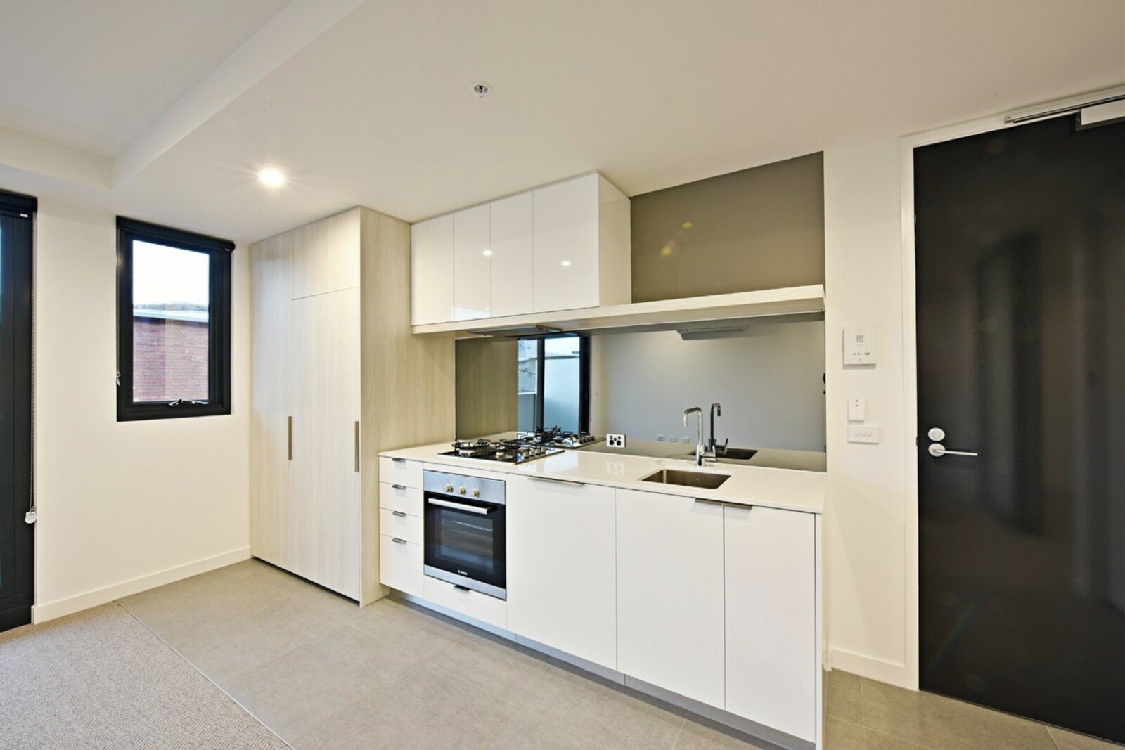 Filled with natural light, the spacious layout features a generous bedroom with built-in wardrobe, a modern central bathroom, and an open-plan living and dining area. The well-appointed kitchen includes a gas cooktop, dishwasher, and ample cupboard space.