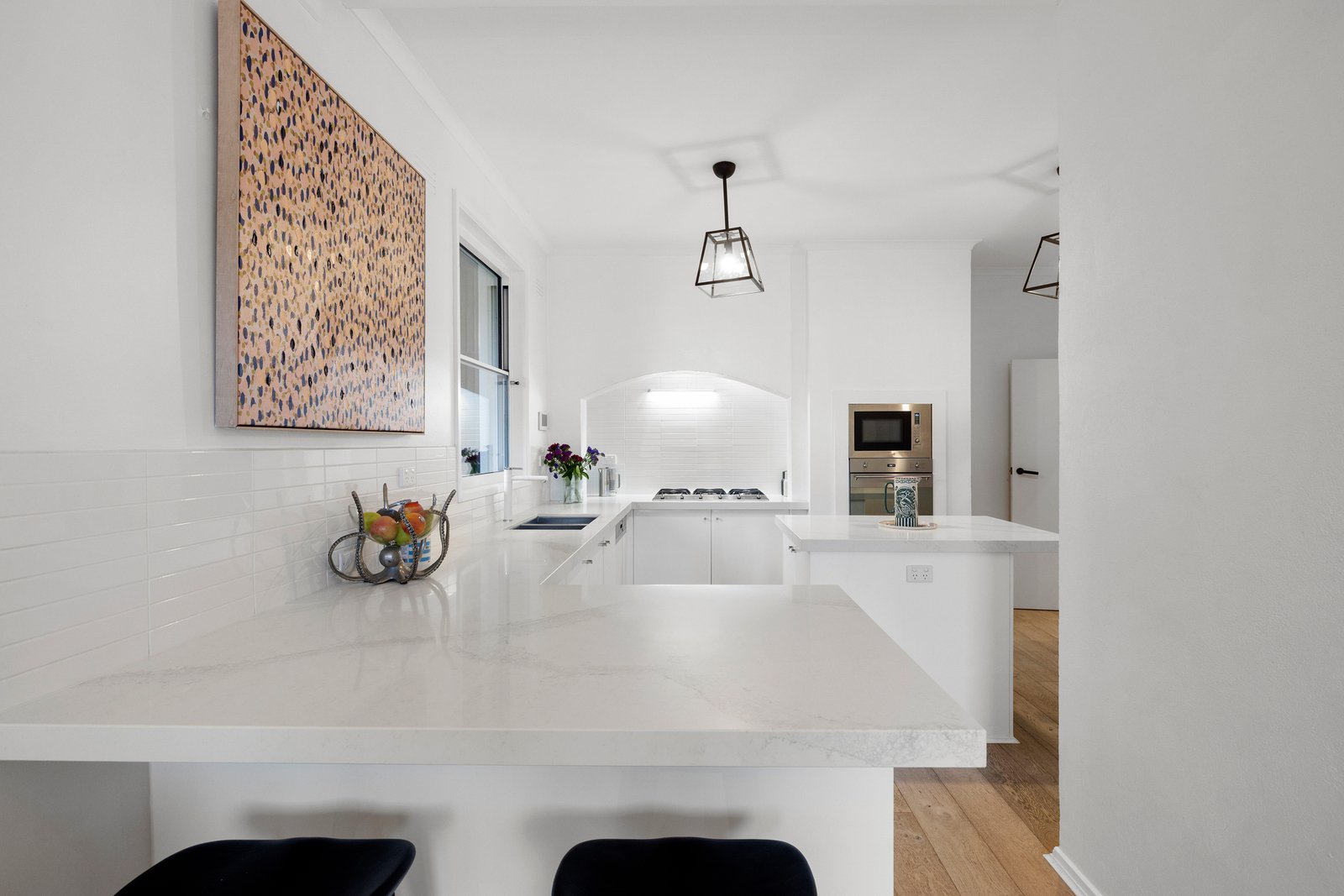 Among its many standout features are cleverly zoned living areas, including a garden-view lounge, a separate & versatile playroom (or formal dining) plus a relaxed meals area/family room, which sits under lofty ceilings and is centred around a cosy gas fireplace. At the heart of the home, the sophisticated Smeg-equipped kitchen boasts a walk-in pantry and stone island, providing a setting that will delight even the most discerning of hosts.
