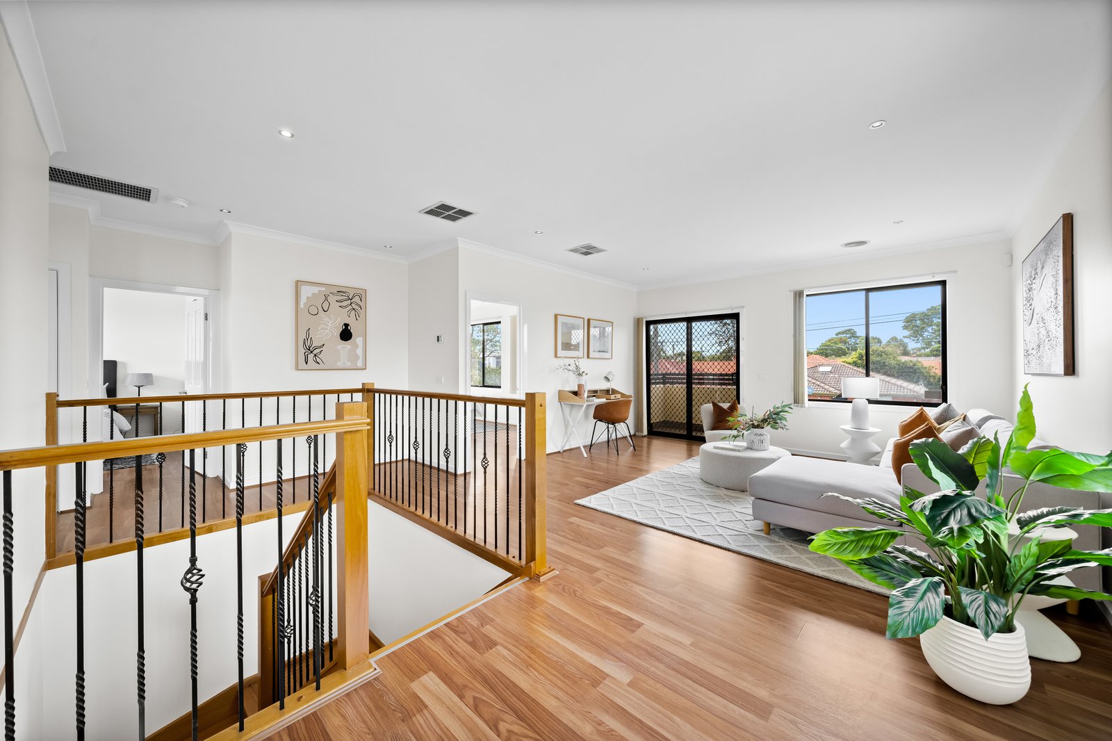 Upstairs, a spacious family retreat with balcony access creates a peaceful zone for relaxation, study or play. The master bedroom features a walk in robe and private ensuite, while two additional bedrooms with built in robes are serviced by a large central bathroom.