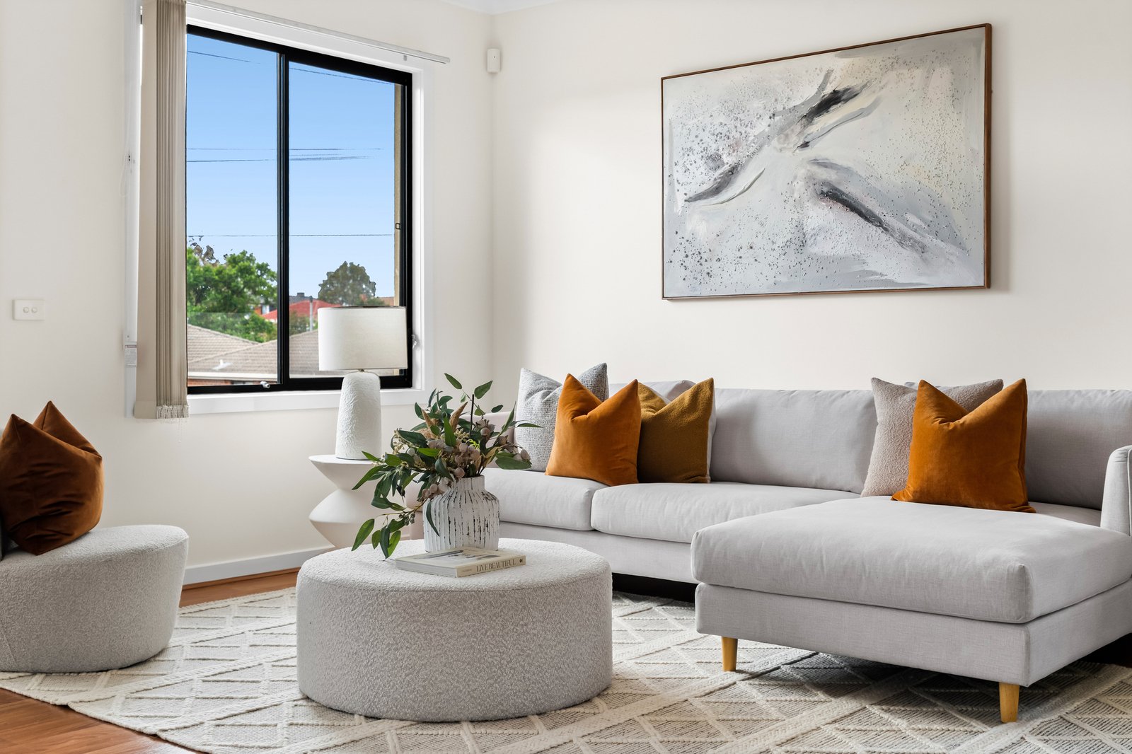 A sunlit living area welcomes you upon entry, offering an ideal space to relax or entertain. It flows effortlessly into the kitchen, complete with...