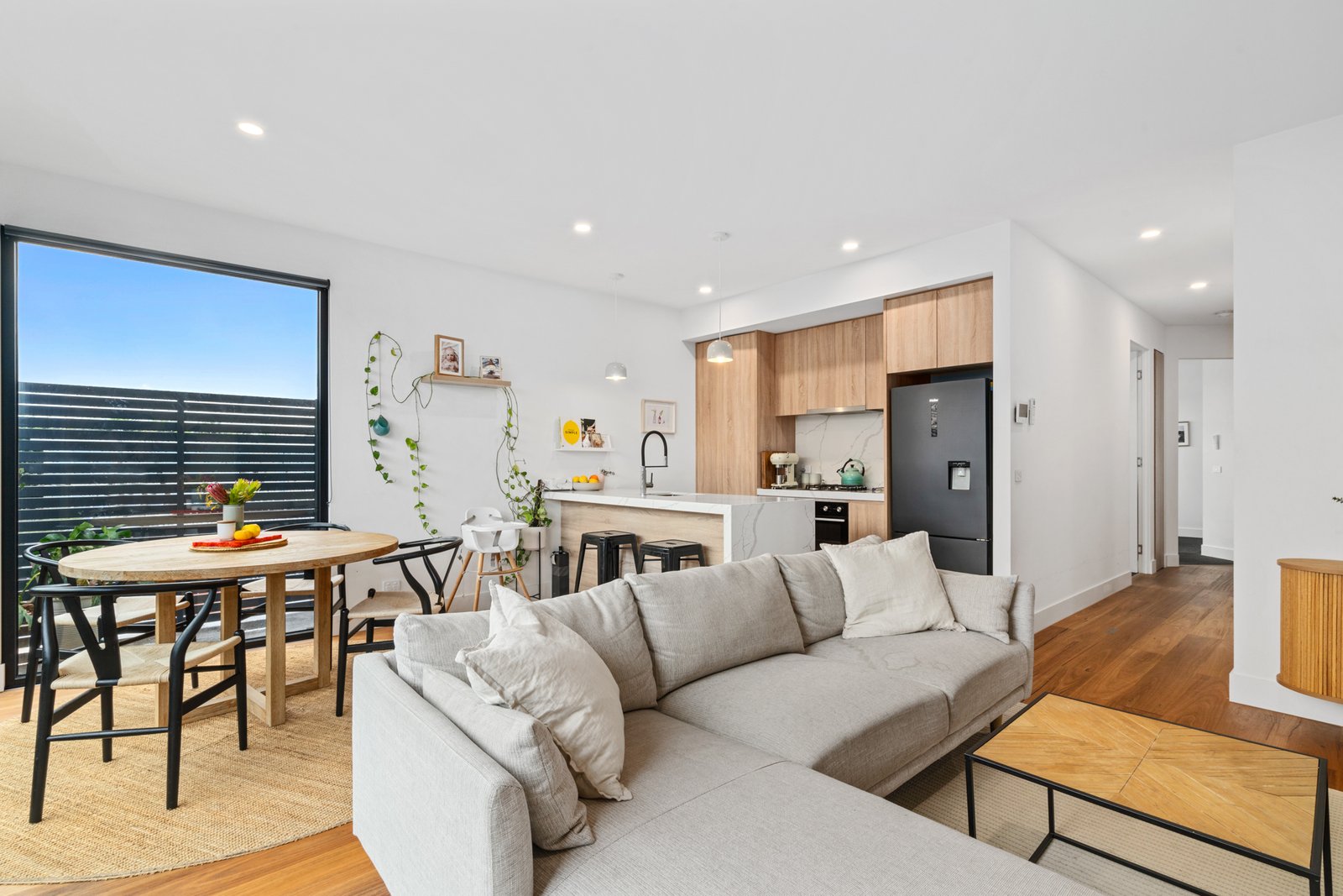 The open-plan living and dining area is perfect for both entertaining guests. The gourmet kitchen comes fully equipped with stainless steel appliances, stone benchtops, and plenty of cabinetry, making meal preparation a delight. Step outside to your private balcony, an ideal spot for enjoying your morning coffee or evening wine.