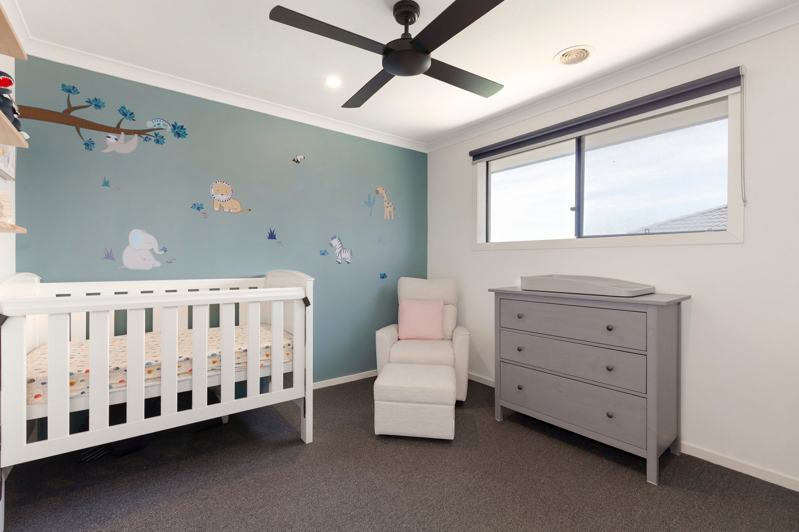 Upstairs, a dedicated children's retreat provides a versatile space for play, study or relaxation, offering separation and privacy from the main living areas below.