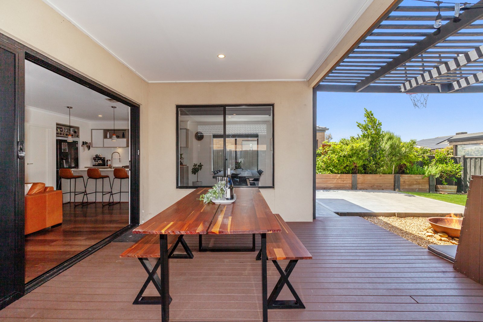 Step outside to a fantastic decked entertaining area, perfect for hosting family and friends, complemented by a low-maintenance backyard featuring an automated water sprinkler system. The garden also includes established passionfruit and bay leaf trees, adding both charm and practicality.