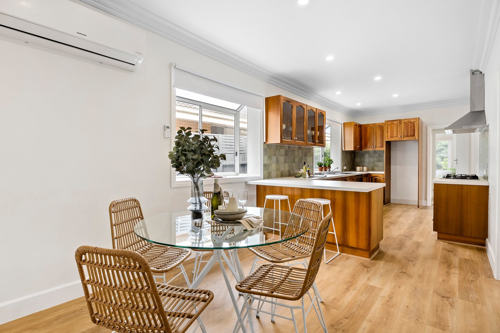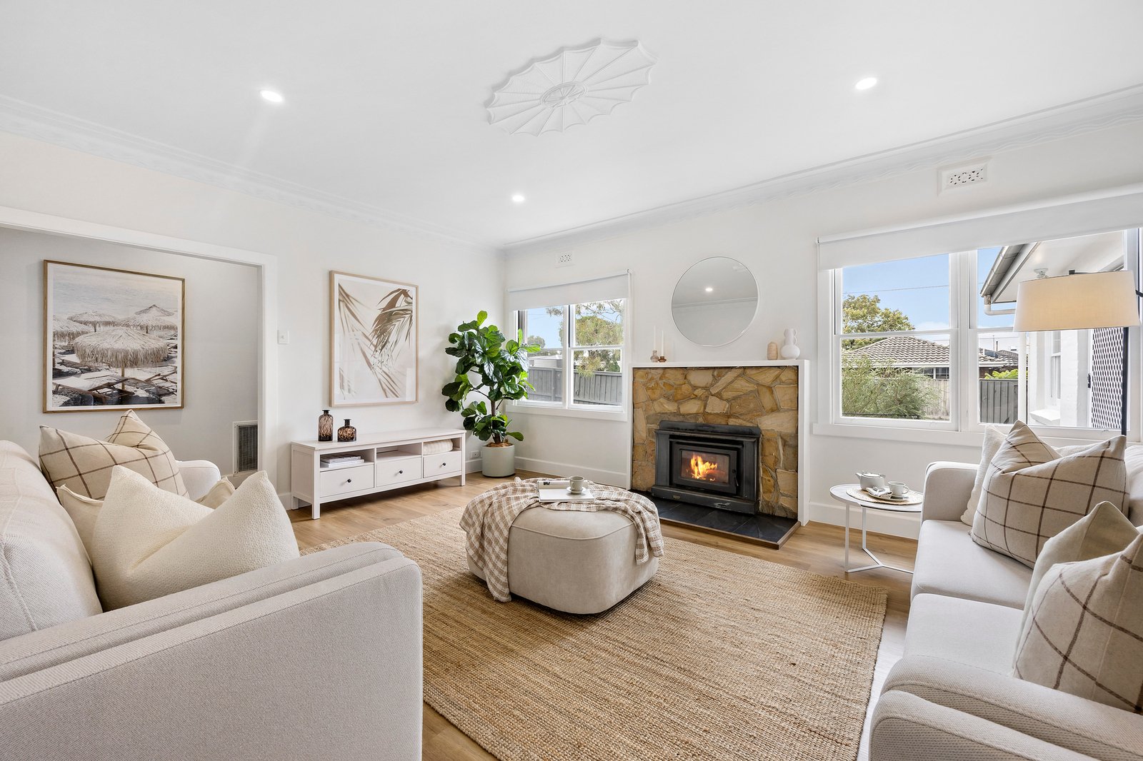 Filled with natural light, the home offers a spacious single-level layout with four bedrooms, two bathrooms and multiple living zones. Expansive windows, 2.7 metre decorative ceilings and contemporary flooring enhance the sense of space throughout.