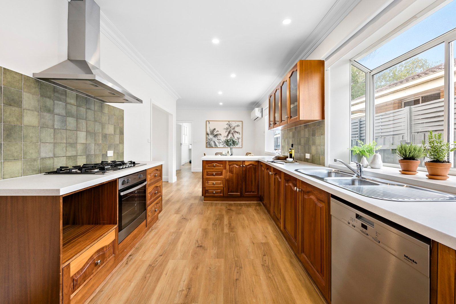 • Timber kitchen with quality stainless steel appliances, including Miele dishwasher