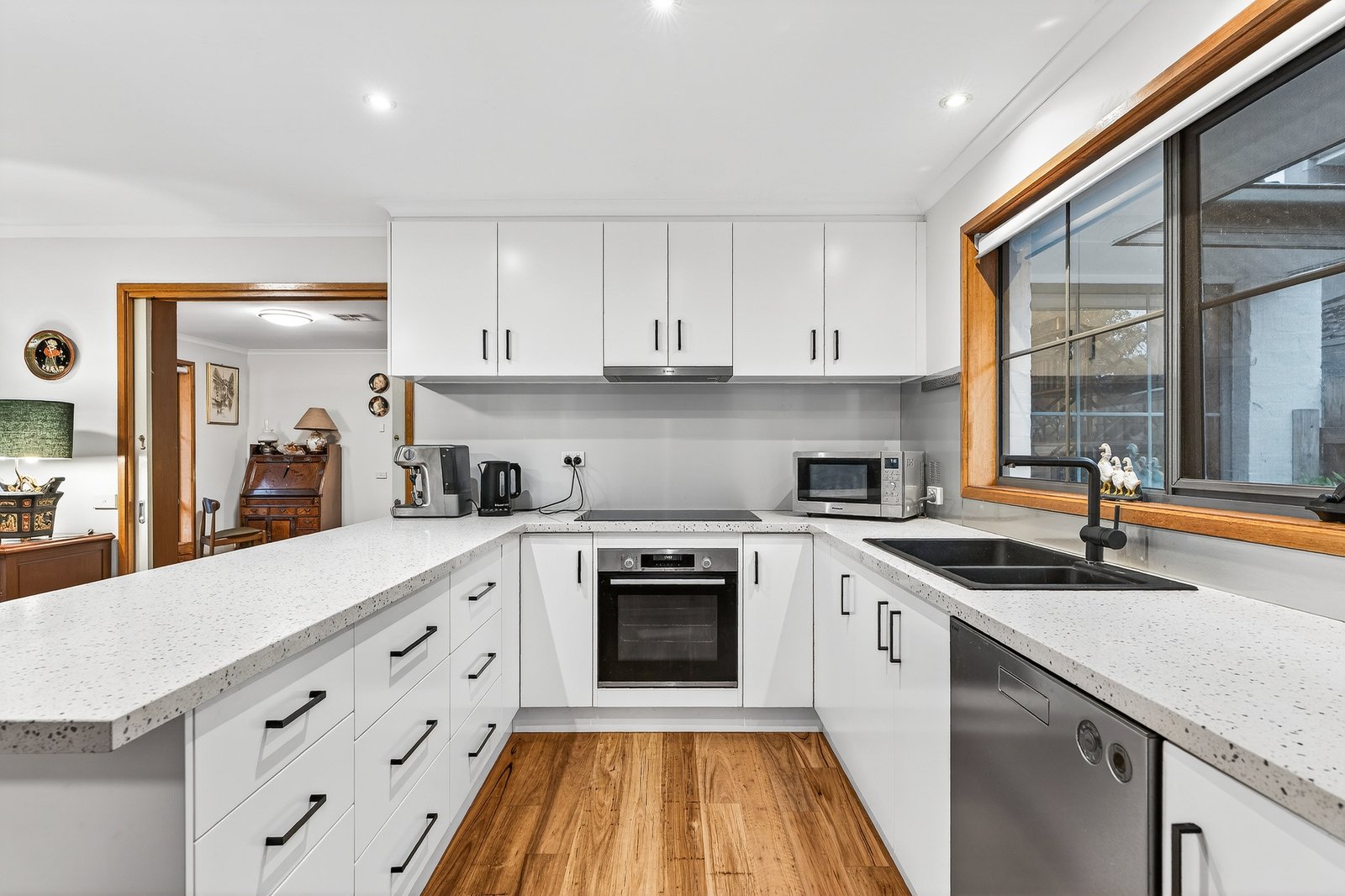Set apart with its own streetfrontage, a generous dual-zone design, and a double auto-garage behind auto-gates, this sizeable home offers a next level single-level lifestyle. Stretched out along a deep northerly aspect with room to lounge and dine (or fit a home-office area) in a sun-catching formal zone, this standalone home has space to relax and entertain in a brilliant casual area with a stylish new stone and European appliance kitchen - complete with Bosch induction cooktop and Asko dishwasher.
