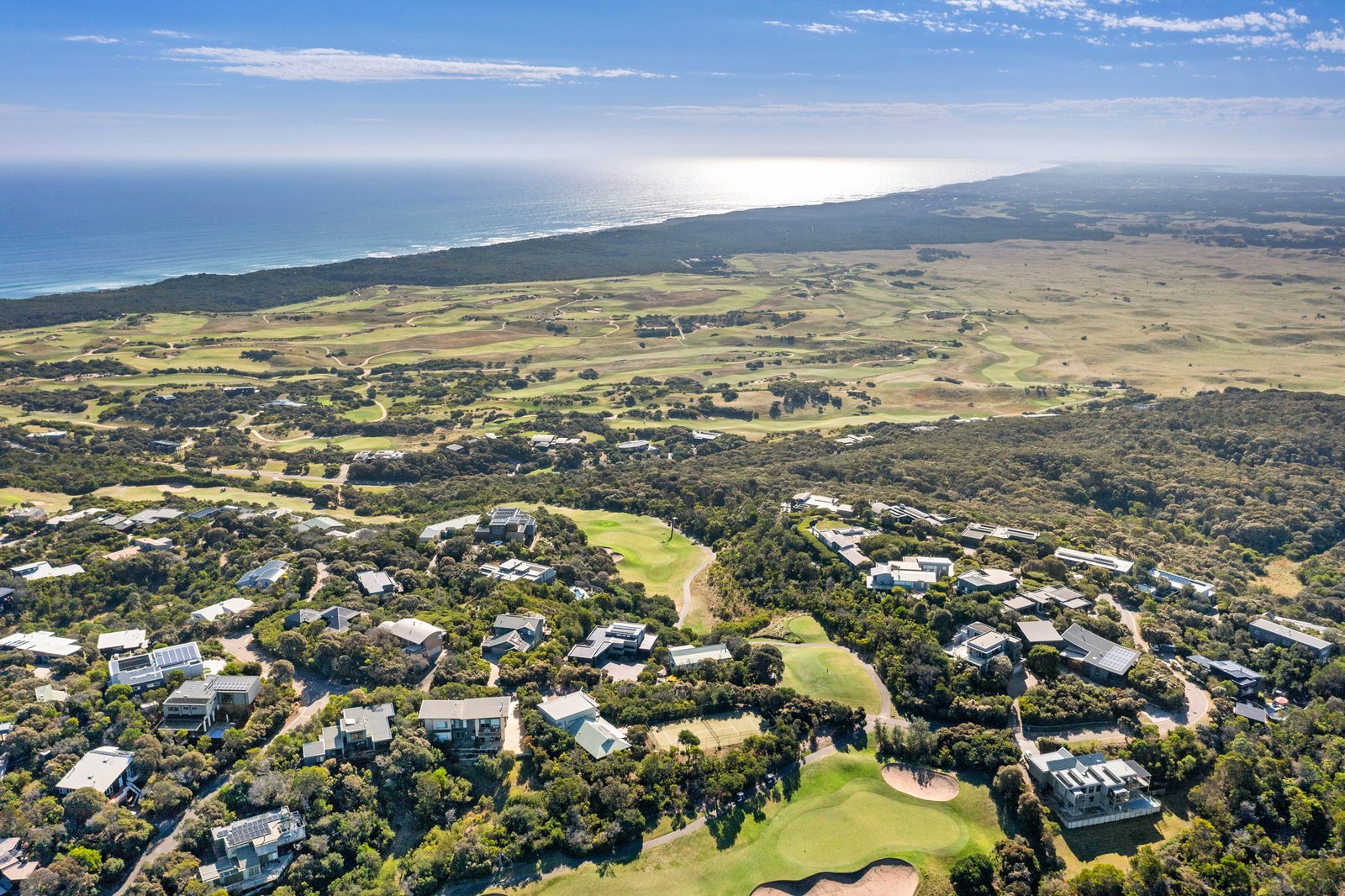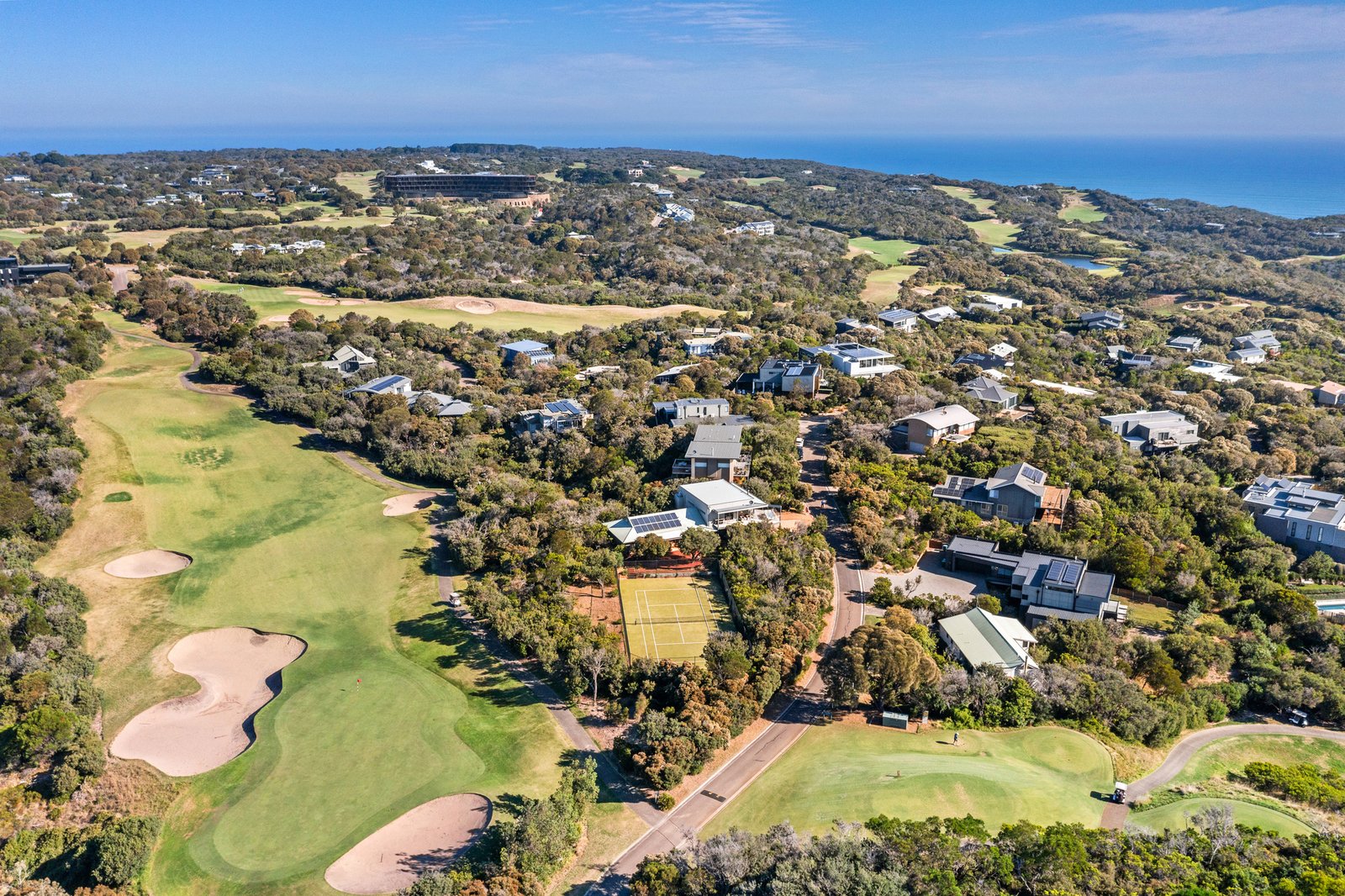 Well positioned within the Moonah Estate and abutting the green of the 13th hole of the RACV Cape Schanck Golf Course, while keeping total privacy thanks to a screen of natives, the unique double block celebrates total lifestyle appeal with private golf course access, a mod grass tennis course, and a large 5-bedroom residence that welcomes families and entertaining across four distinct living zones.