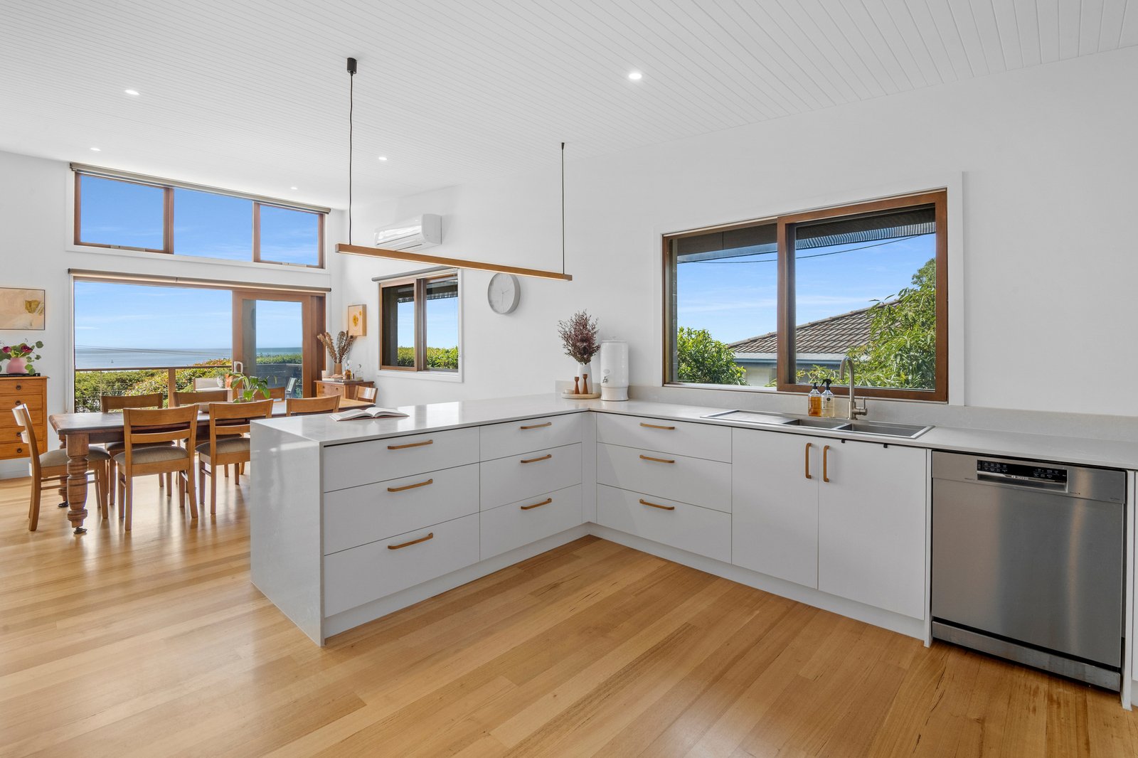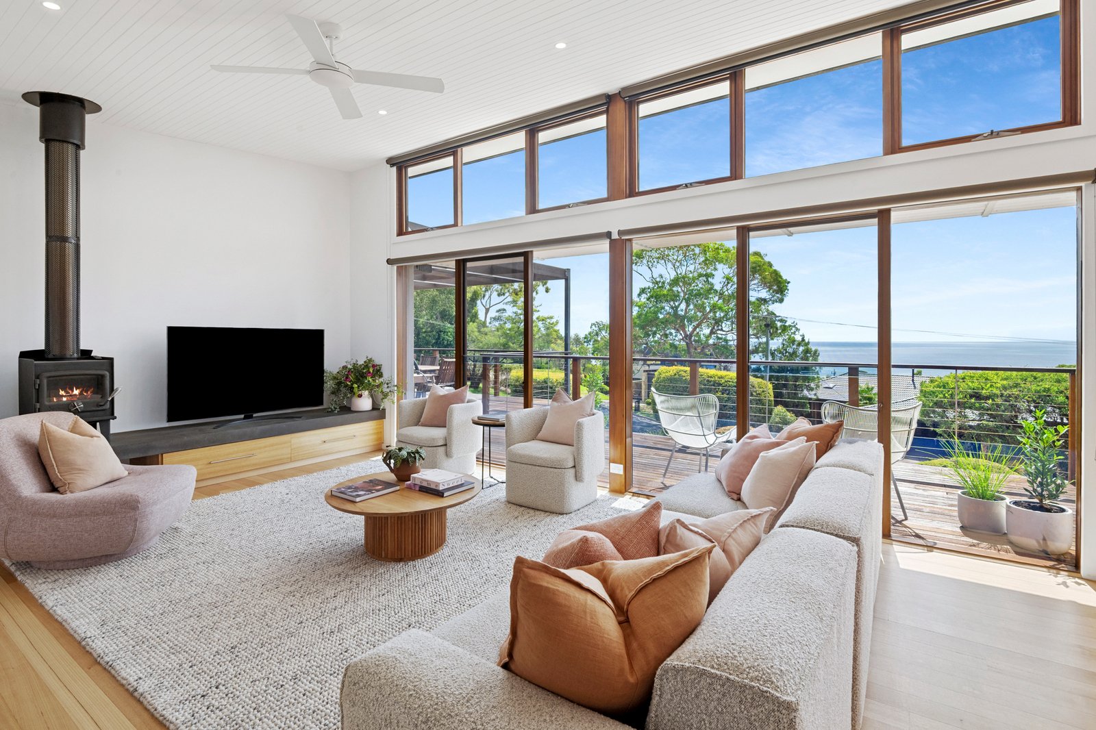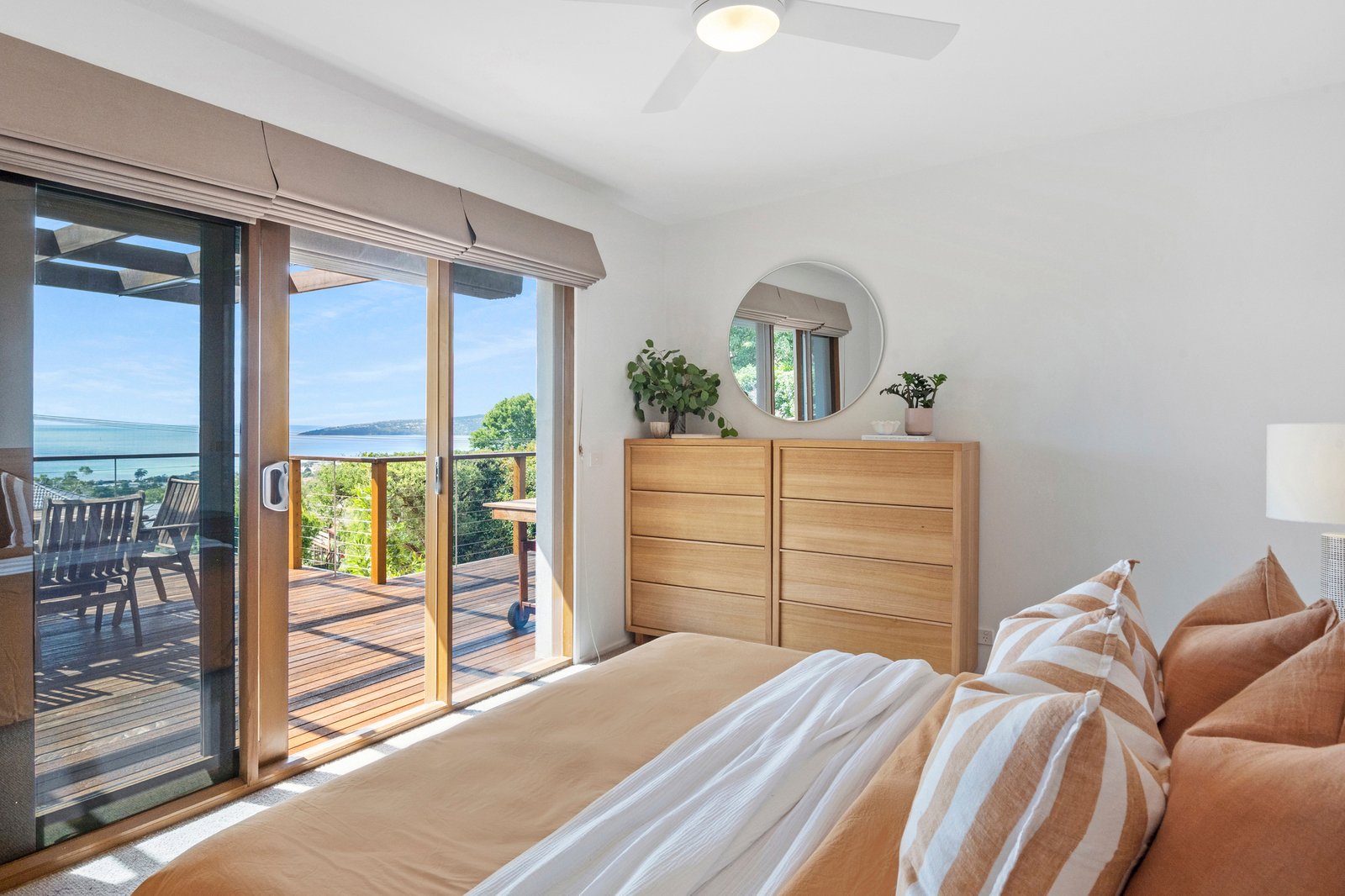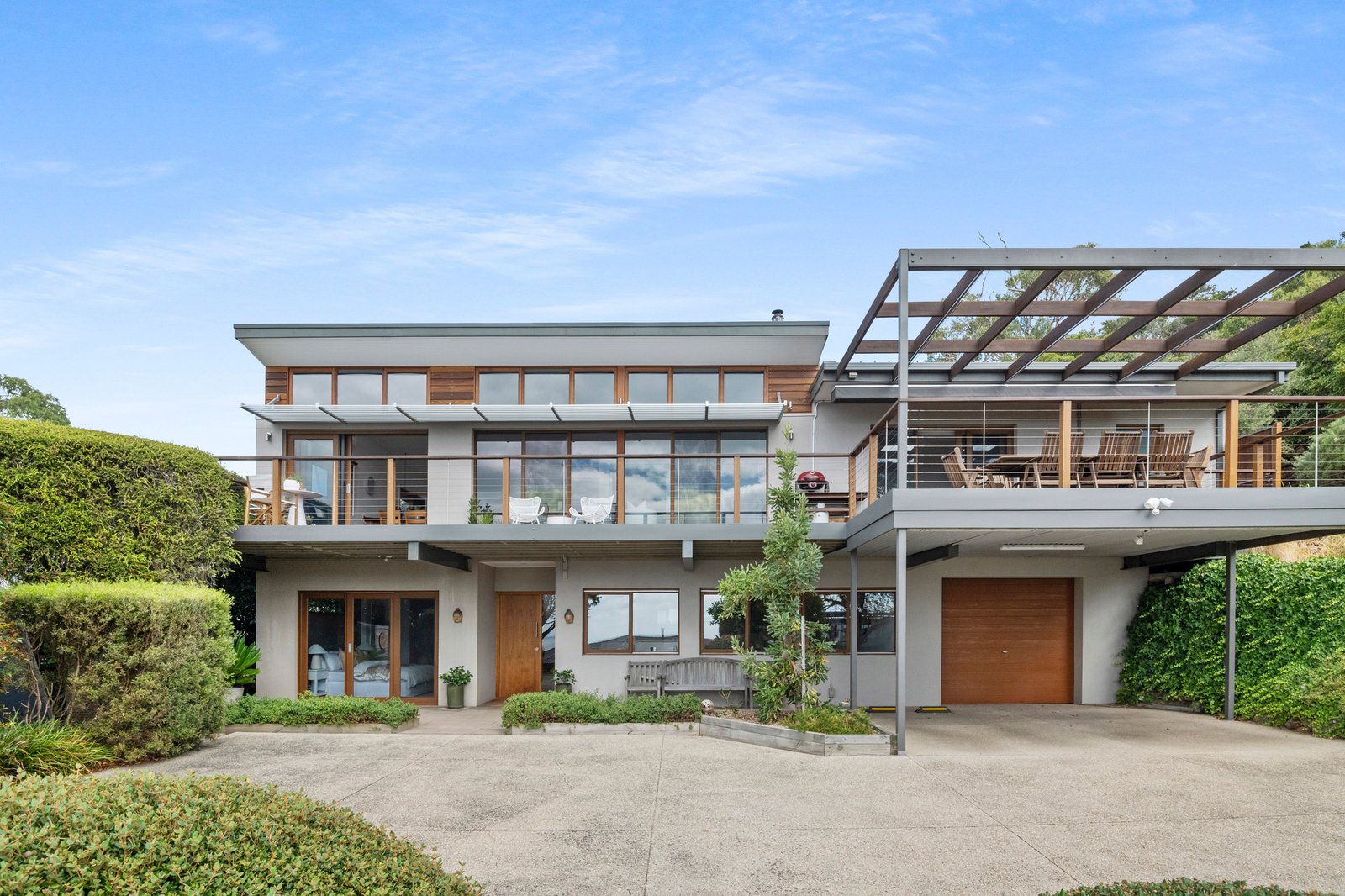 Bookending each day with a shifting skyline, the first-floor living and dining domain is a stunning highlight, framed by full-height glazing that captivates with breathtaking water vistas. A freestanding Nectre wood-burner and a floating bluestone shelf brings warmth and style, while the expansive stone kitchen well-appointed with Bosch appliances and a walk-in pantry, stands as the heart of this stunning retreat. Beyond, a wonderful alfresco deck with awning, anchors summer entertaining, while rear gardens reveal a tiered veggie garden, sun deck, garden shed and a 14,100lt water tank.