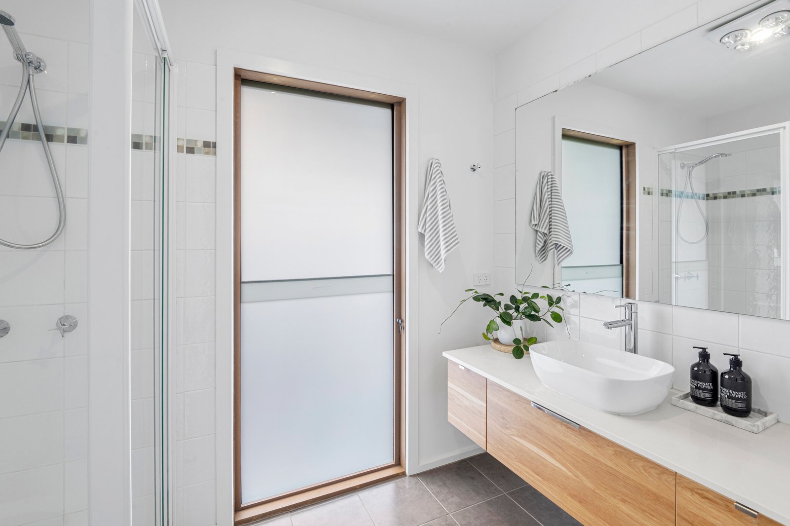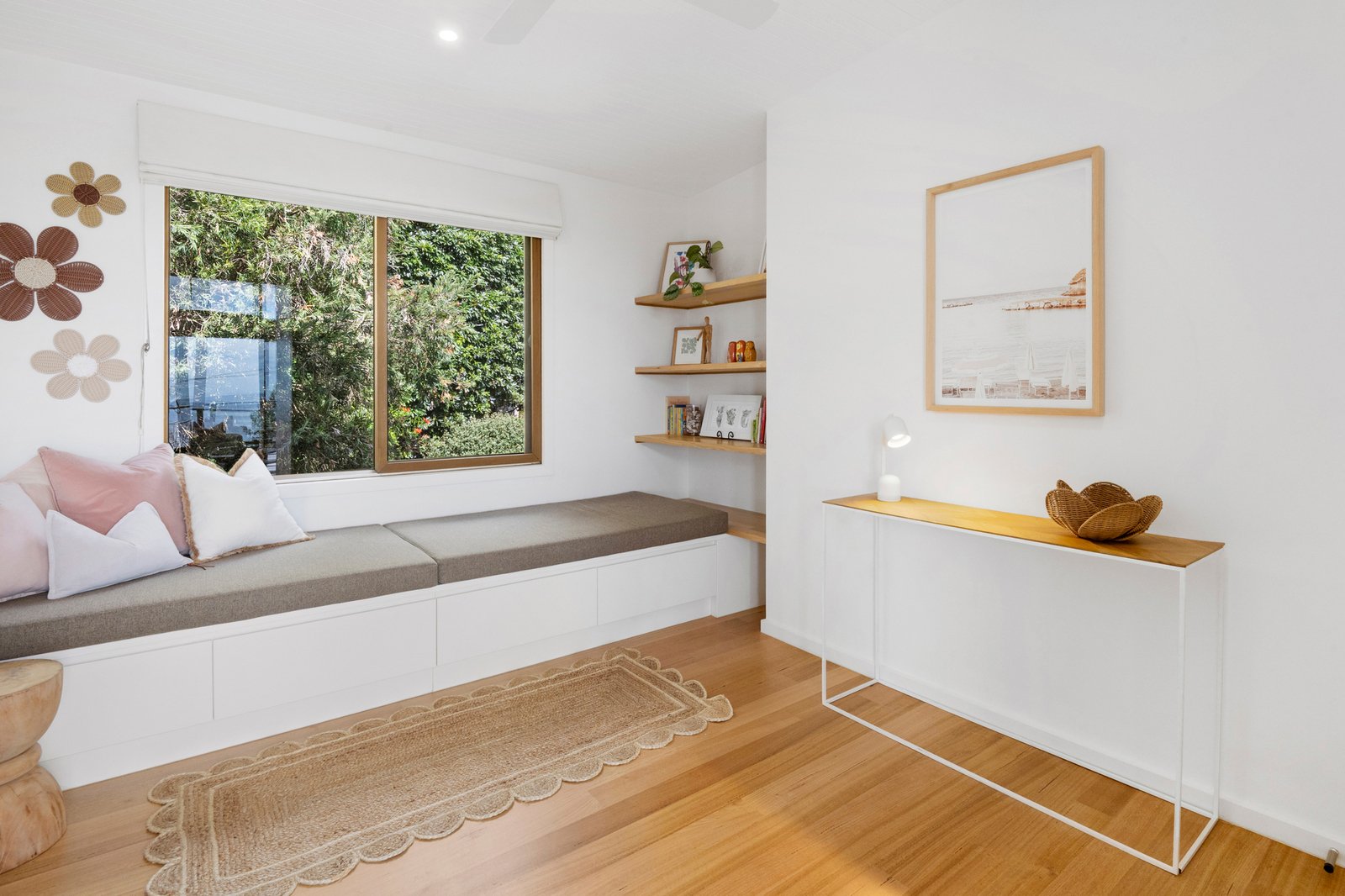 A concealed first-floor accommodation wing provides privacy to the main suite with walk-in robe, ensuite and deck access, second bedroom, family spa-bathroom, and laundry. A third living area with built-in bench seating, offers flexible family space as a playroom or home office, while the home cleverly continues with split-system heating and cooling, partial double glazing, a 9.1kW solar system with Tesla battery, ample internal storage, hot water service with heat pump, garage with internal access and ample off-street parking.