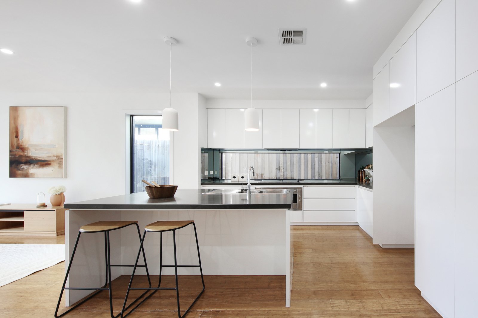 Custom detailed to a demanding standard with 900mm Bosch appliances for the state-of-the-art kitchen, a fully separate laundry and great storage including built-in and walk-in robes, this light-filled home is styled with premium stone benchtops, hardwearing sustainable bamboo floors, plush carpets and an eye-catching open-tread timber stair. With climate-control zoned upstairs and down, and solar hot-water and a 3.8 kW energy system adding to cost efficiencies, this high-quality home offers well-designed outdoor space too with two-car parking including an auto-garage.