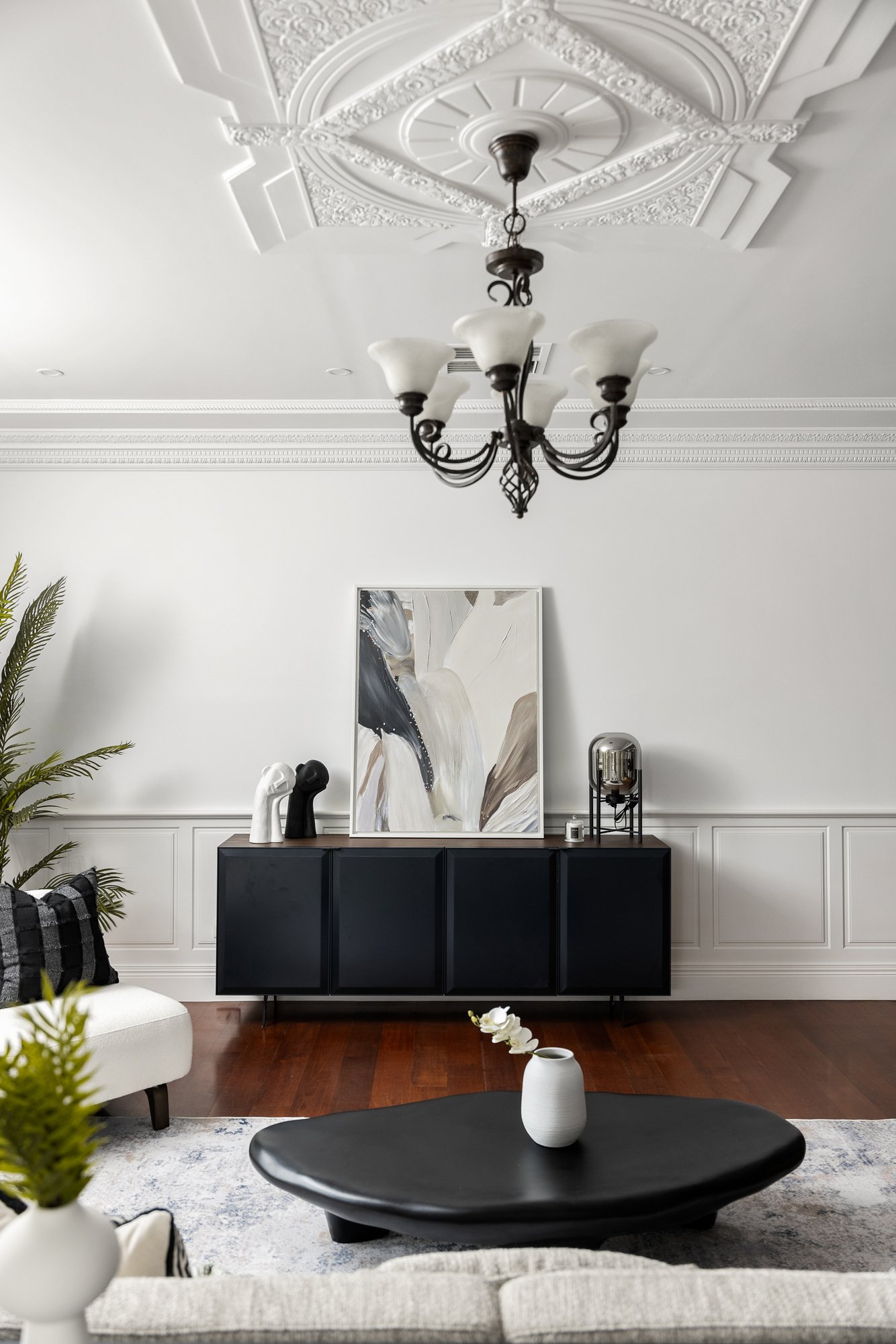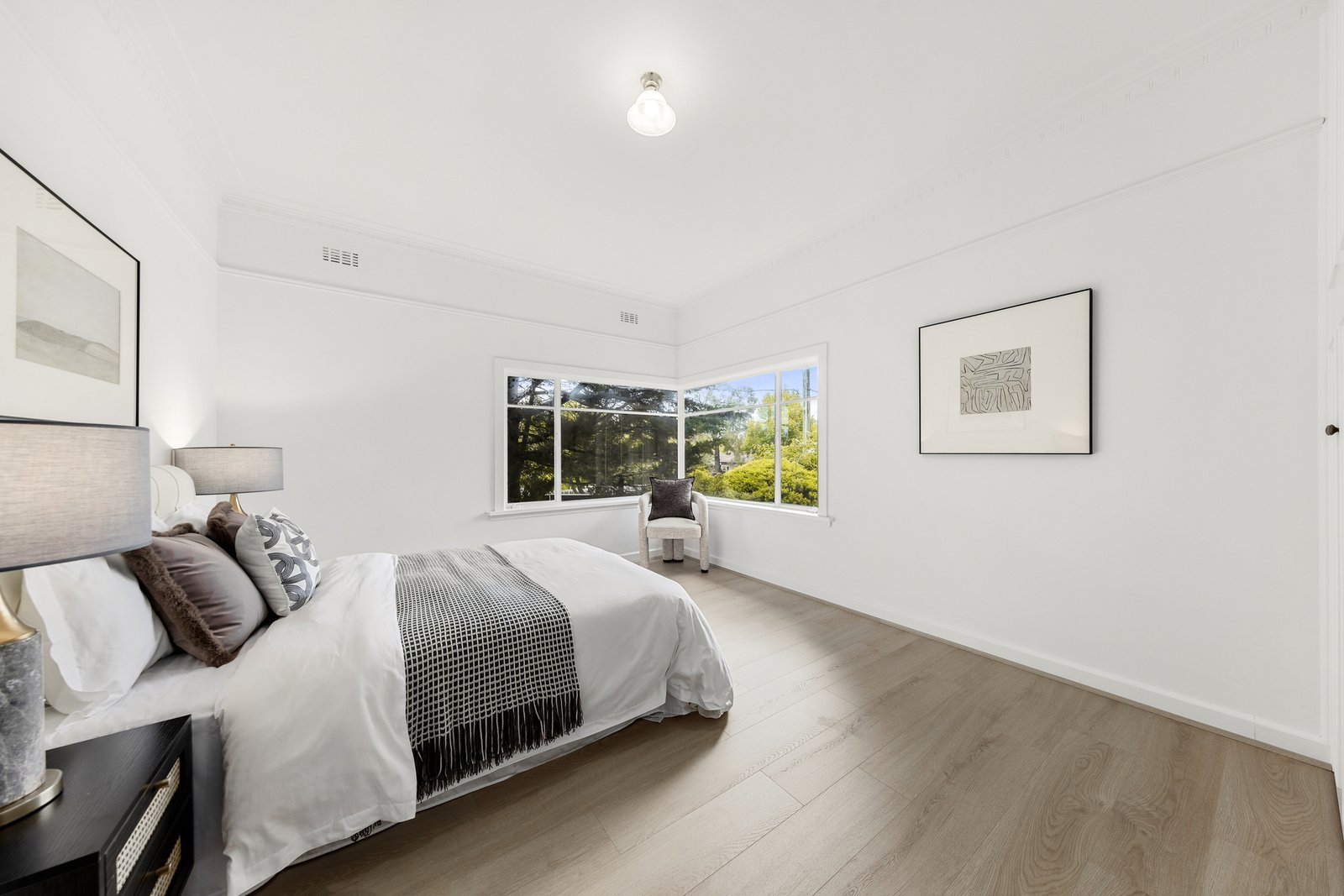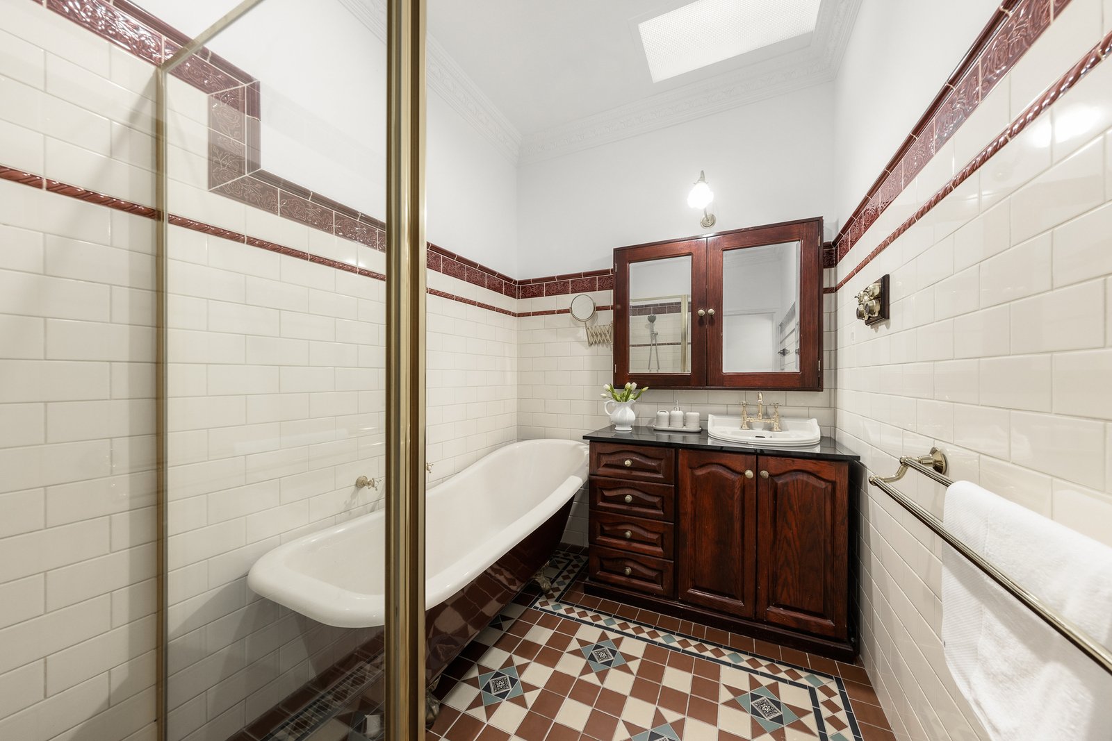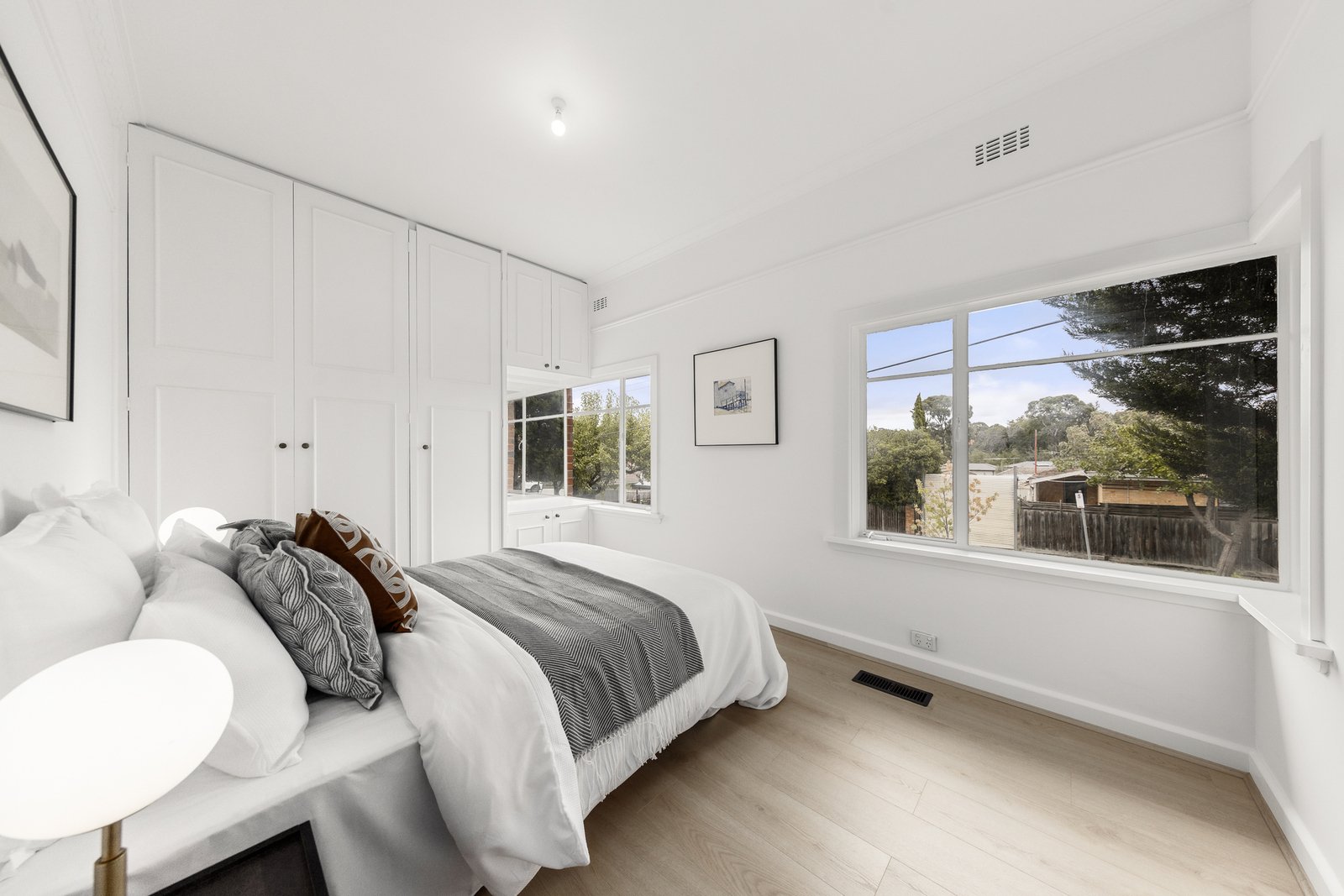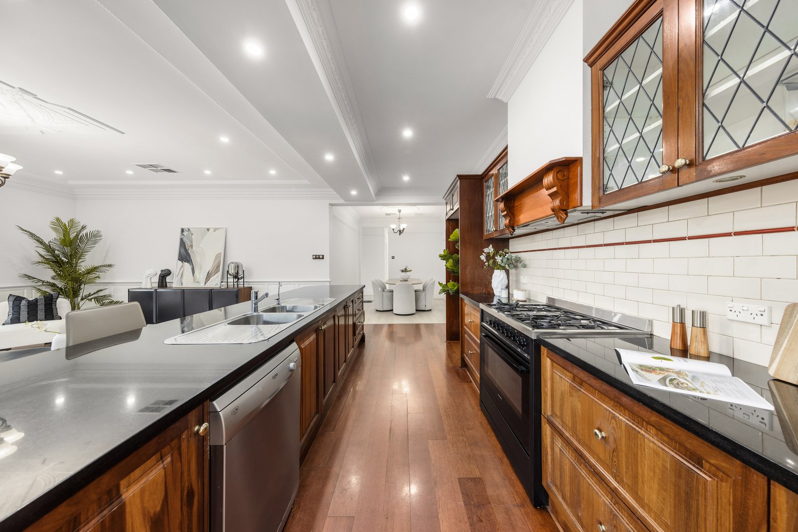 Period charm is evident throughout, with ornate high ceilings, decorative cornices, ceiling roses, picture rails and dado panelling, complemented by modern comforts including ducted heating, evaporative cooling, stylish window furnishings and excellent storage.