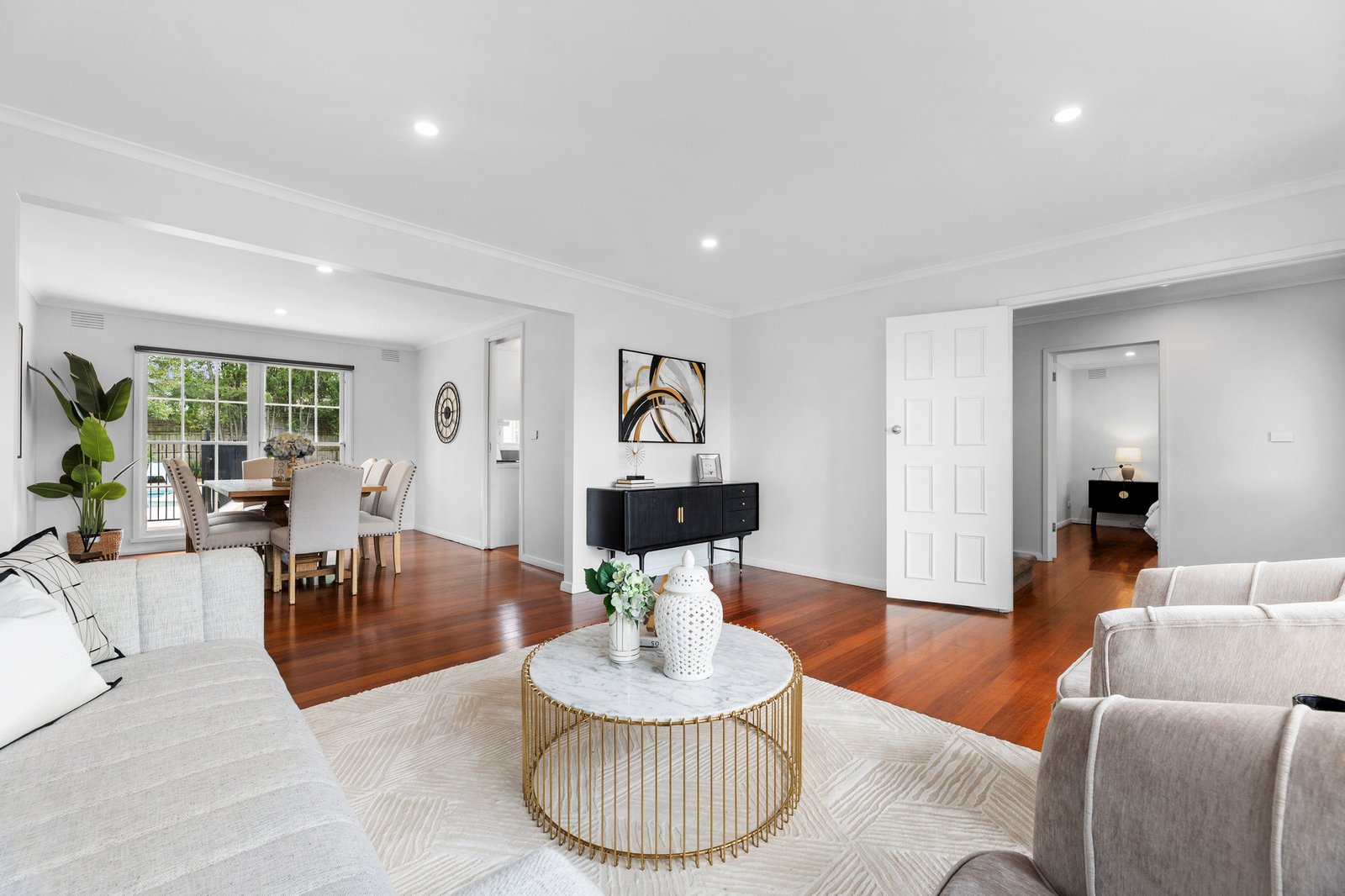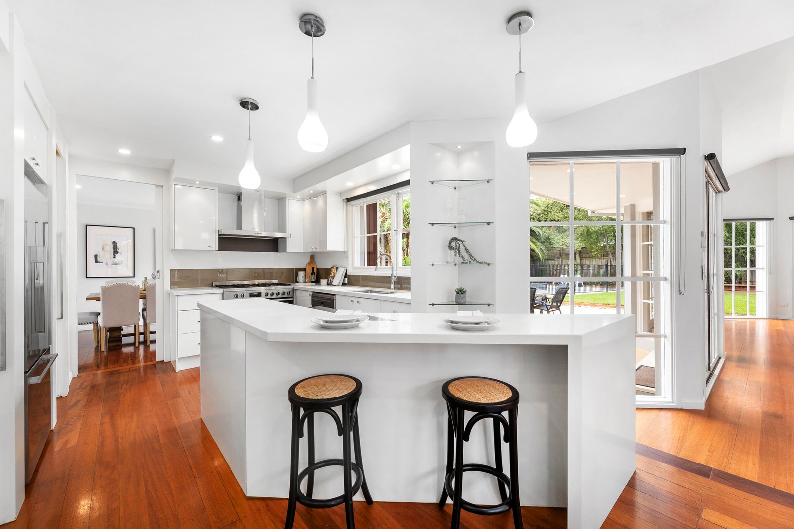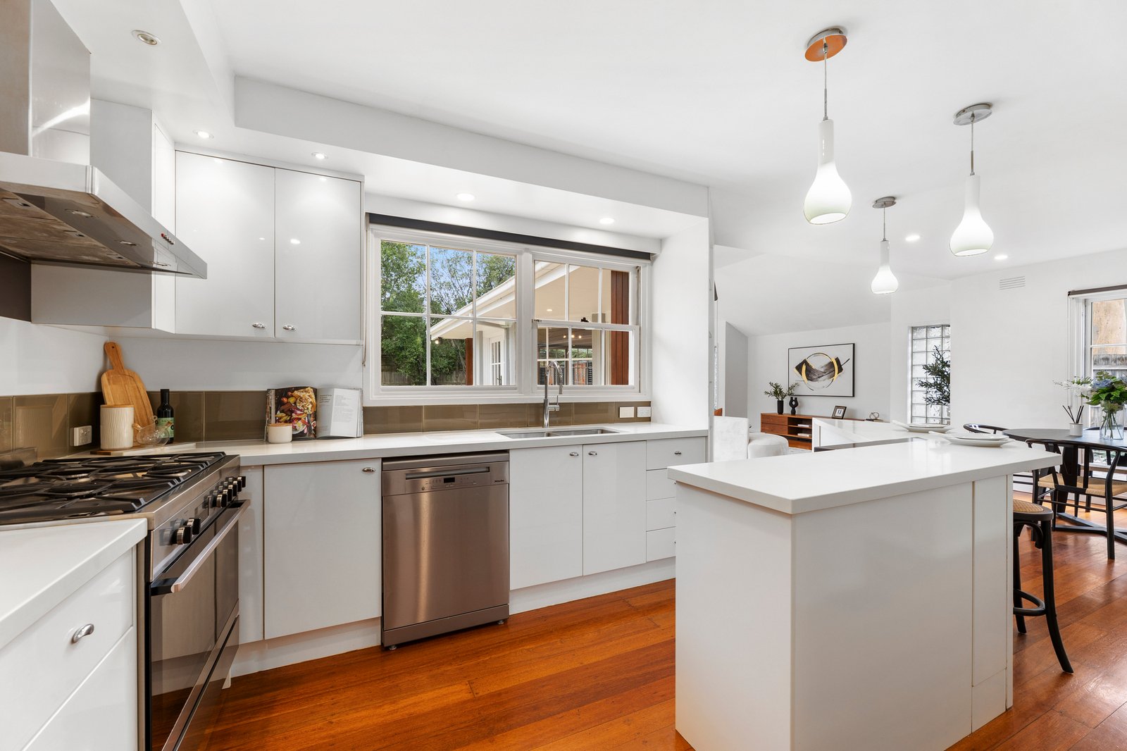 The layout is generous and practical, dedicating the ground level to free-flowing living space to accommodate both formal and casual occasions around a stylish Euro-appointed kitchen.