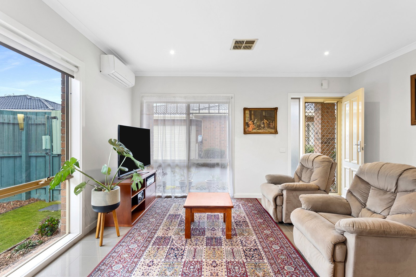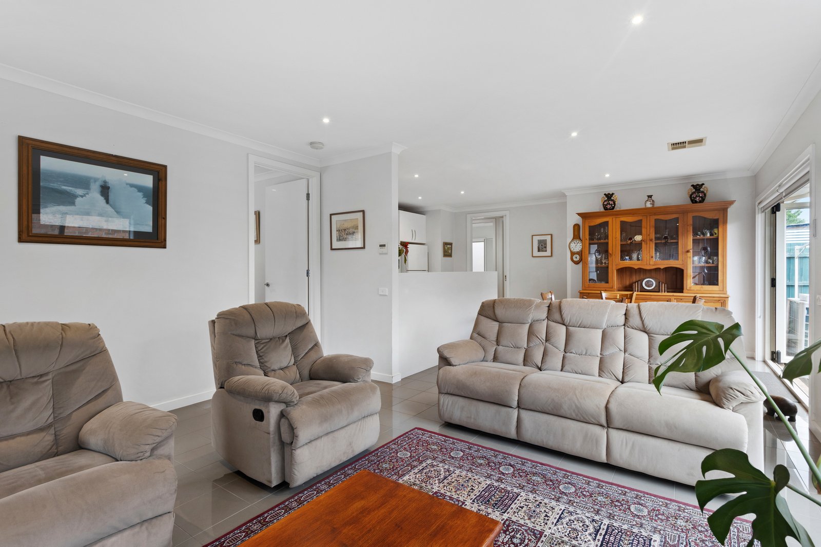 Thoughtfully laid out across a single-level, the open-plan interiors extend from a central, modern kitchen well-equipped with 900mm Technika appliances, a dishwasher, and ample preparation space, before spilling to a quiet garden setting that supports indoor-outdoor enjoyment.