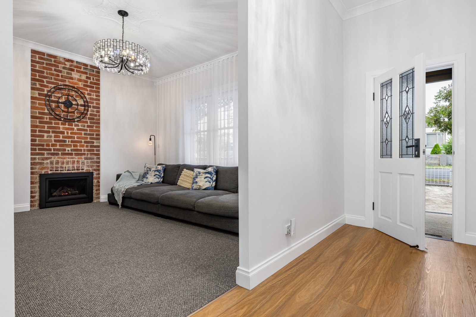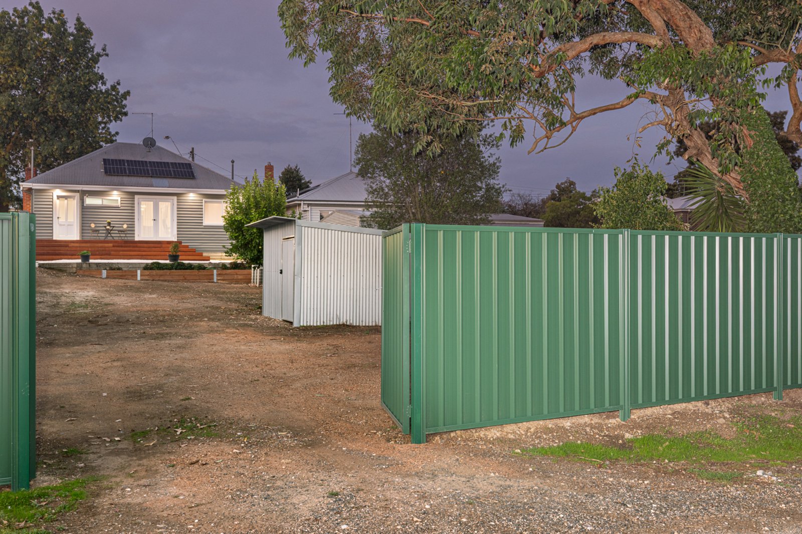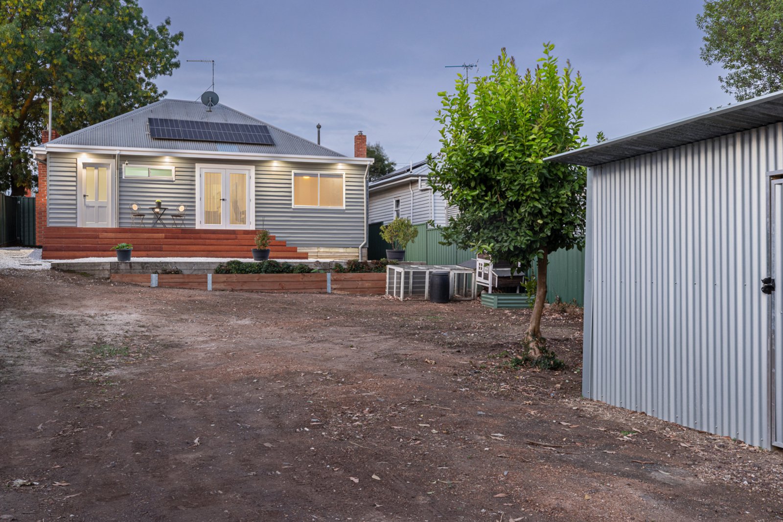 Inside, the home showcases soaring high ceilings along with character throughout with light-filled spaces and thoughtful layout having been fully renovated to combine character and contemporary design. The spacious master bedroom is a true retreat, featuring sheers, a ceiling fan, a walk-in wardrobe and a well-appointed ensuite with a large walk-in shower, vanity with storage and toilet. Two further bedrooms are generously sized, both with ceiling fans, with one also including built-in robes with full-length mirrors. The central bathroom is generous and stylish, complete with a tiled feature wall, large bath, shower, vanity with storage and toilet. At the front of the home, a formal living area offers a cosy yet spacious setting with a gas log fireplace and brick feature wall, split system air conditioner and sheers for privacy, all complemented by an abundance of natural light. The open-plan kitchen and meals area forms the heart of the home, featuring a waterfall edge island bench, ample storage, double sink with black accents and its own split system. There is a study nook area off the dining space that flows seamlessly out to a decked outdoor patio that overlooks the spacious backyard, creating the perfect setting for entertaining and with a blank canvas ready to design your own oasis along with rear lane access off of Dodds lane offering the option to build shedding or potential to subdivide STCA. Other key features include a large laundry with ample bench space, trough, storage and direct outdoor access adds further functionality and a 6.6kw solar system.