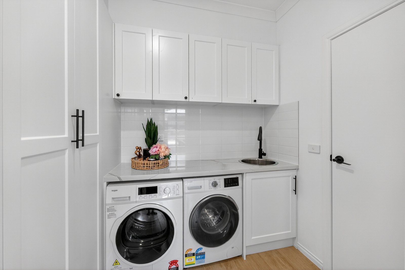 Bathed in natural light, the home showcases timber flooring and designer matte black tapware and hardware throughout,...