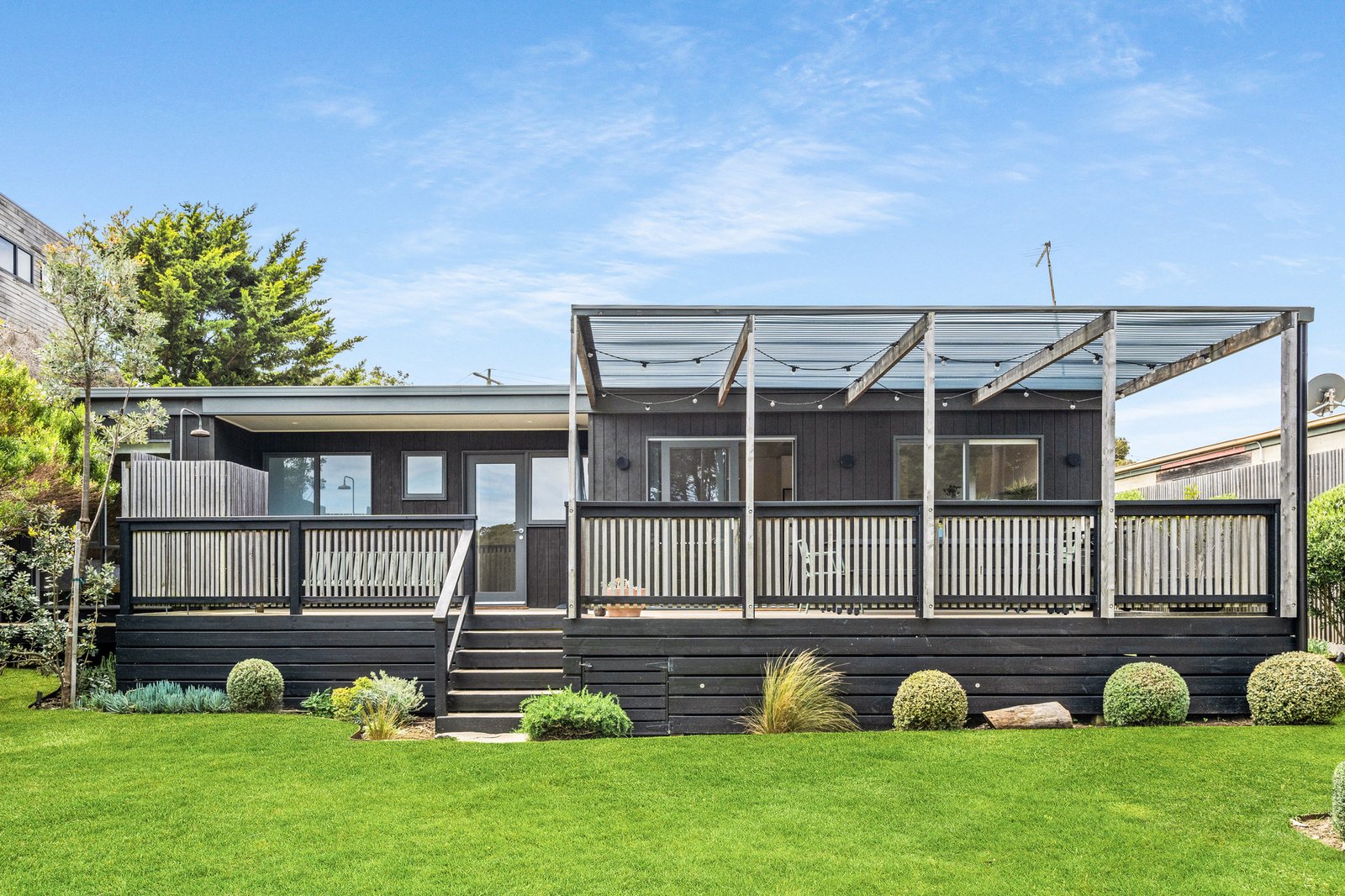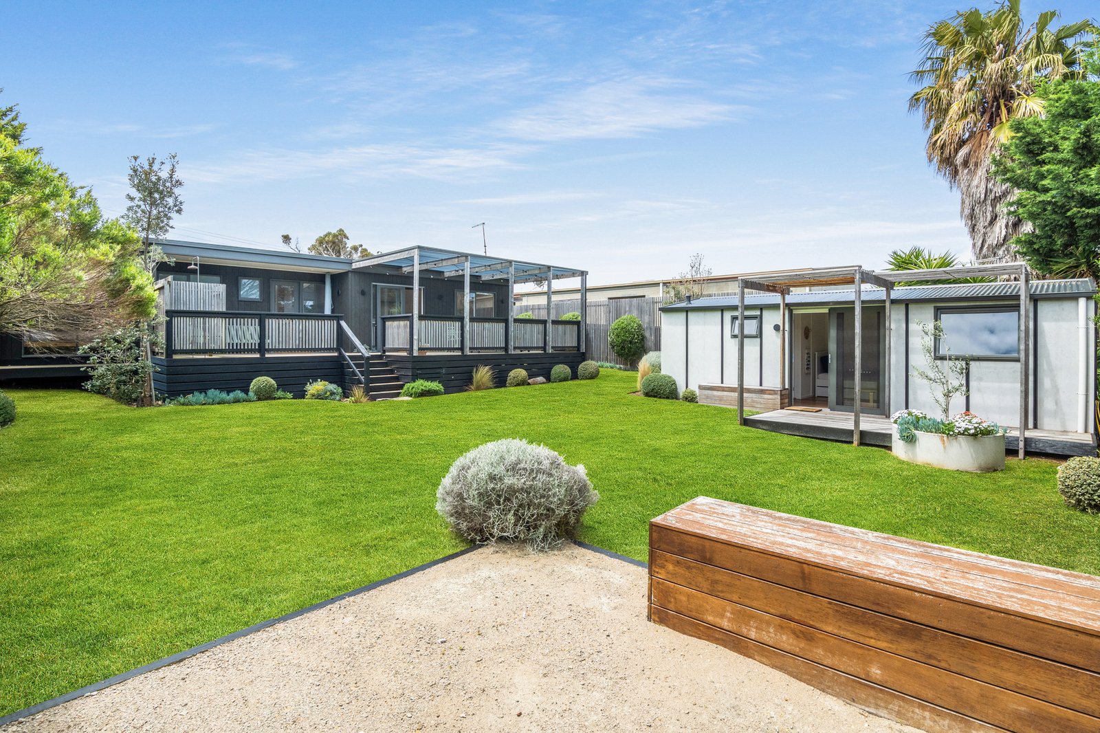 All bedrooms within the main home are finished with plush carpets and built-in robes, accompanied by a stylish family bathroom, whilst the garden studio with a chic en-suite provides a flexible fourth bedroom with independent entry, or a kids' retreat out back. A motorised gate secures generous parking, complemented by multiple split system heating/cooling units and a recently renovated laundry. Close to Dundas Street shops, popular surf breaks, world-class golf courses, Peninsula Hot Springs, Alba Spa and the ocean tracks, the location caps off an easy, memorable short-stay or permanent escape that works just as well for a quick weekend as it does for an extended summer stay.