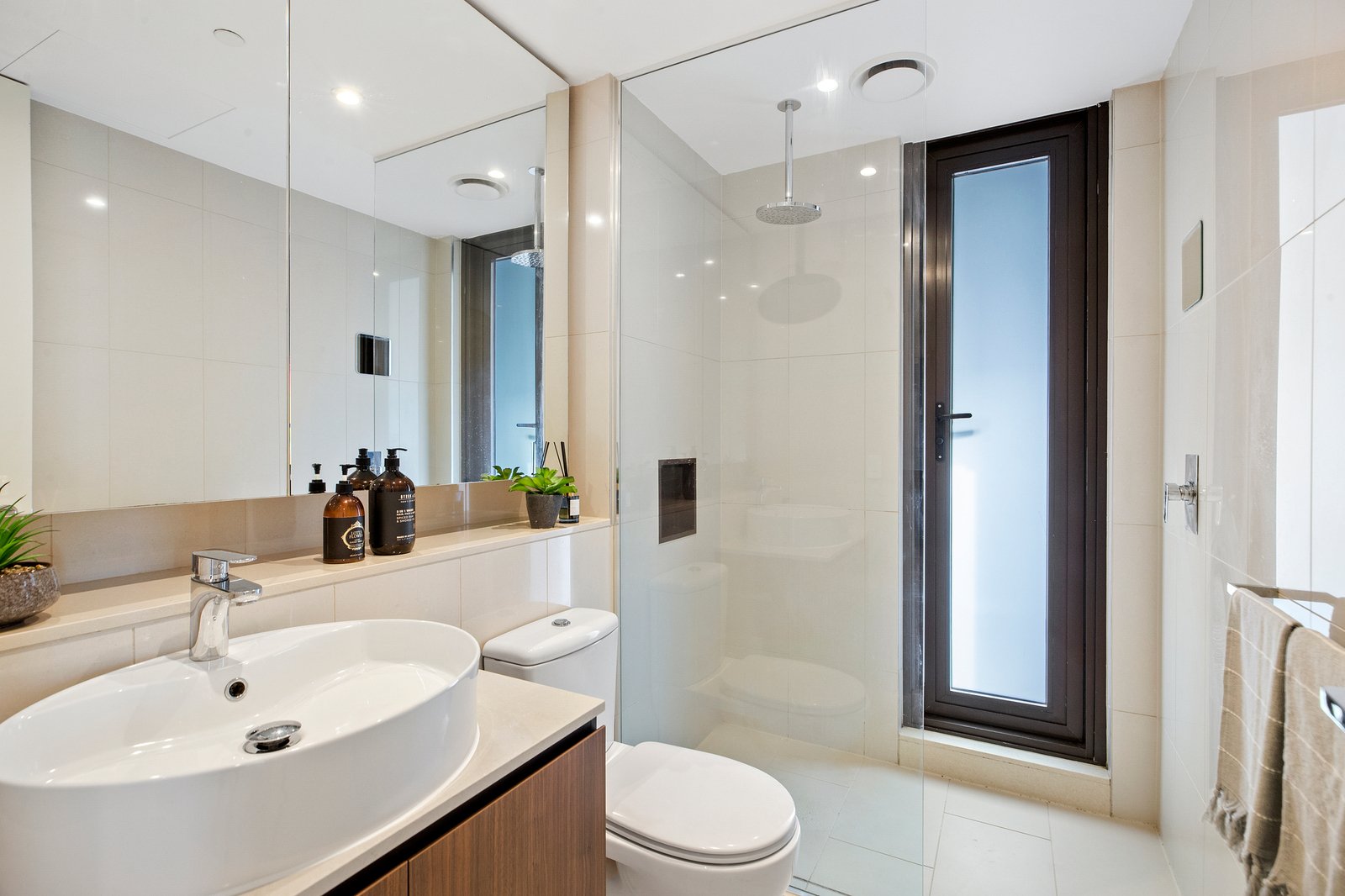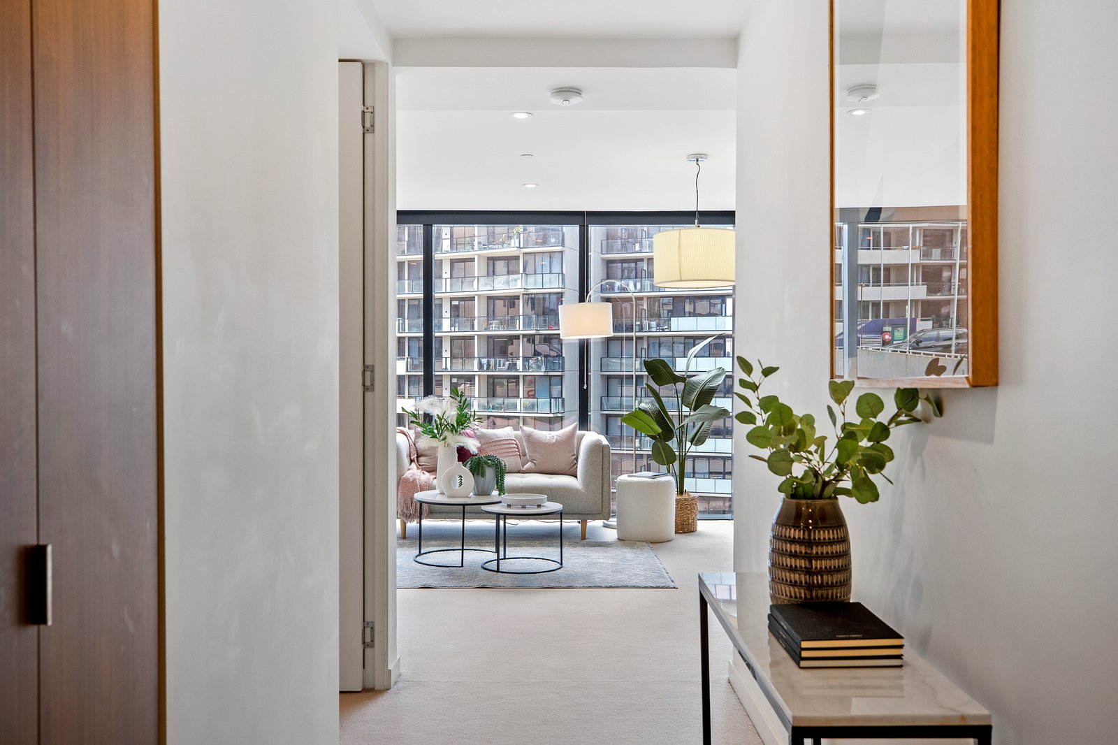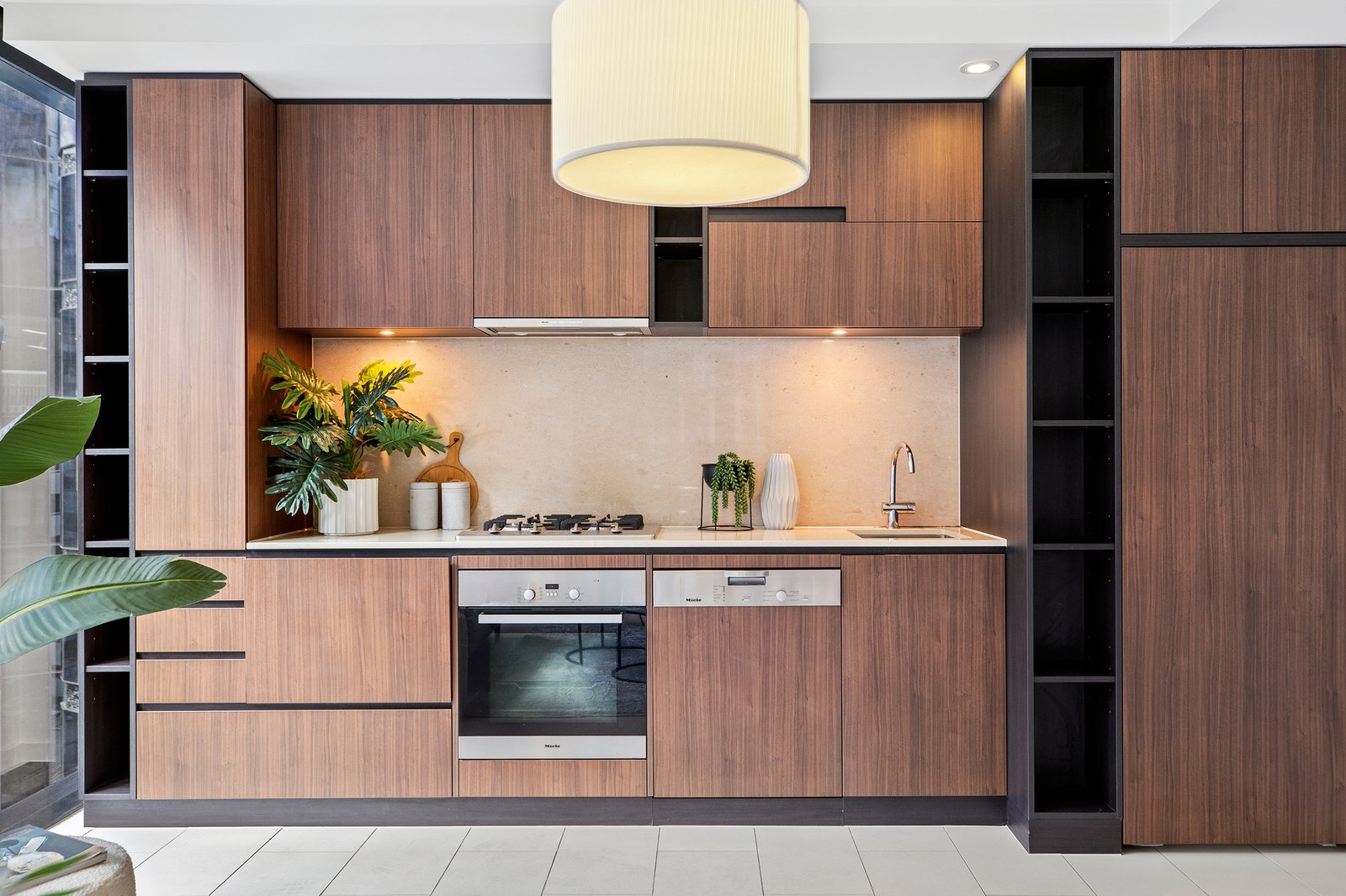Bathed in sunlight, at the rear of the development this corner apartment boasts two balconies and north facing area views. The large living precinct showcases space & sophistication, detailed by a seamlessly integrated kitchen dressed in timber style cabinetry & Miele appliances. The large bedroom with viewing window is joined by a chic bathroom featuring floor-to-ceiling tiling with an attached balcony through the shower.