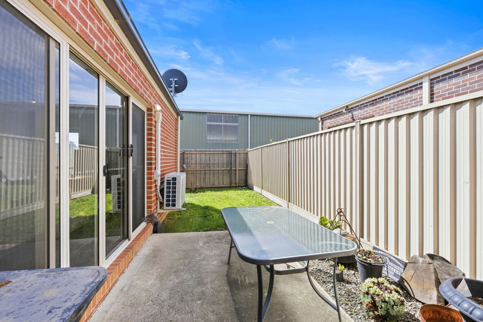 Sliding doors open out to a private, low-maintenance courtyard perfect for a morning coffee or relaxed afternoon outdoors without the upkeep.