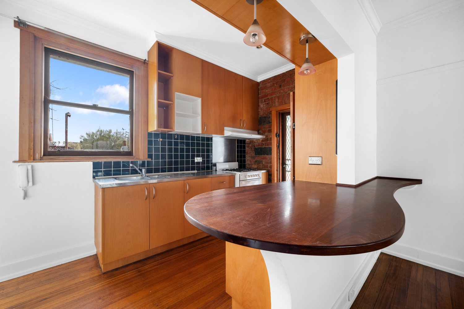 Central to all transport and restaurants, it comprises security entry at front and back, polished timber floors, open-plan living with gas heater, separate double bedroom with built-in robe, central bathroom with bath, and internal laundry facilities.