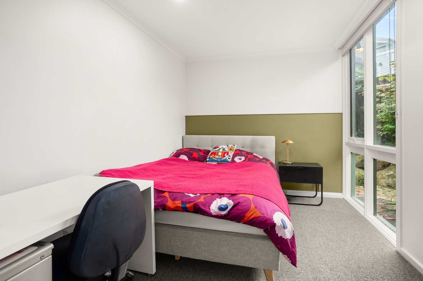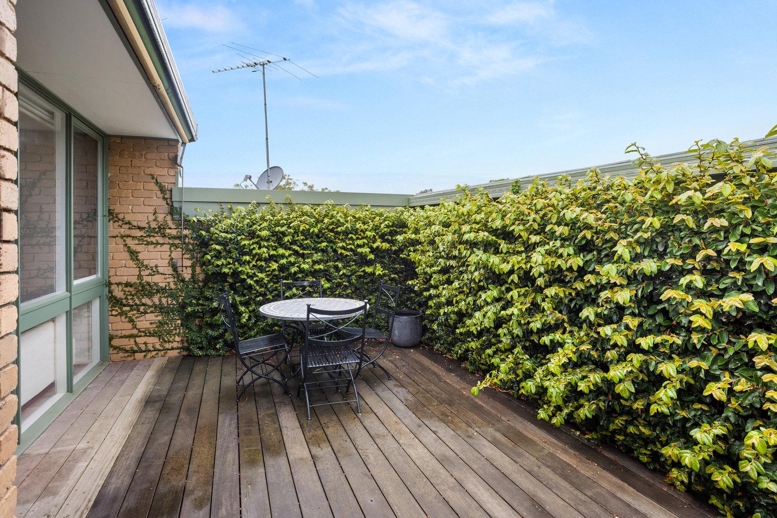 Behind its own secured fence, this home boasts a lounge and dining room that collectively catch the warming glow of light pouring in from north, east and west. Complimented by a generous deck that’s framed by living verdant walls to one side, a brick paved garden to the other and a quality kitchen with dishwasher.
